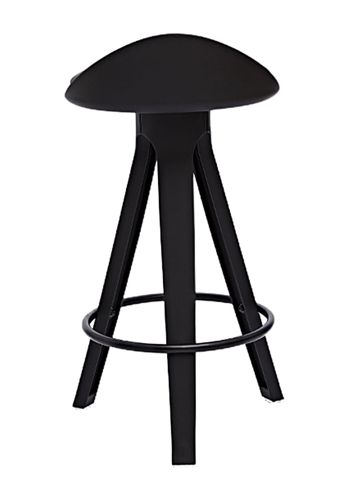 Krzesło barowe zapewni komfort nawet najbardziej wymagającym użytkownikom miękkiemu siedzisku, które jest obite czarno eko skórą. Siedzisko osadzone jest na 3 stabilnych nogach. Oparcie oraz nóżki wykonane są z solidnego polipropylenu natomiast obręcz wykonana jest z metalu pomalowanego proszkowo pod kolor hokera.