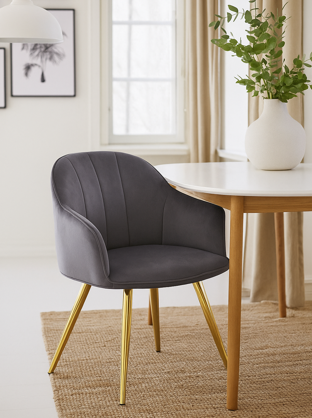 Krzesło Kanada z podłokietnikami to stylowe i komfortowe rozwiązanie dla Twojego wnętrza. Tapicerowane welurową tkaniną obicie zapewnia elegancki wygląd oraz przyjemność w codziennym użytkowaniu. Miękki i przyjemny w dotyku welur nadaje całości klasyczny charakter, który doskonale wkomponuje się w różne style aranżacji – od nowoczesnych po bardziej klasyczne przestrzenie. Dodatkowym atutem są metalowe nogi, które nie tylko zapewniają stabilność i wytrzymałość, ale również podkreślają nowoczesny design mebla.