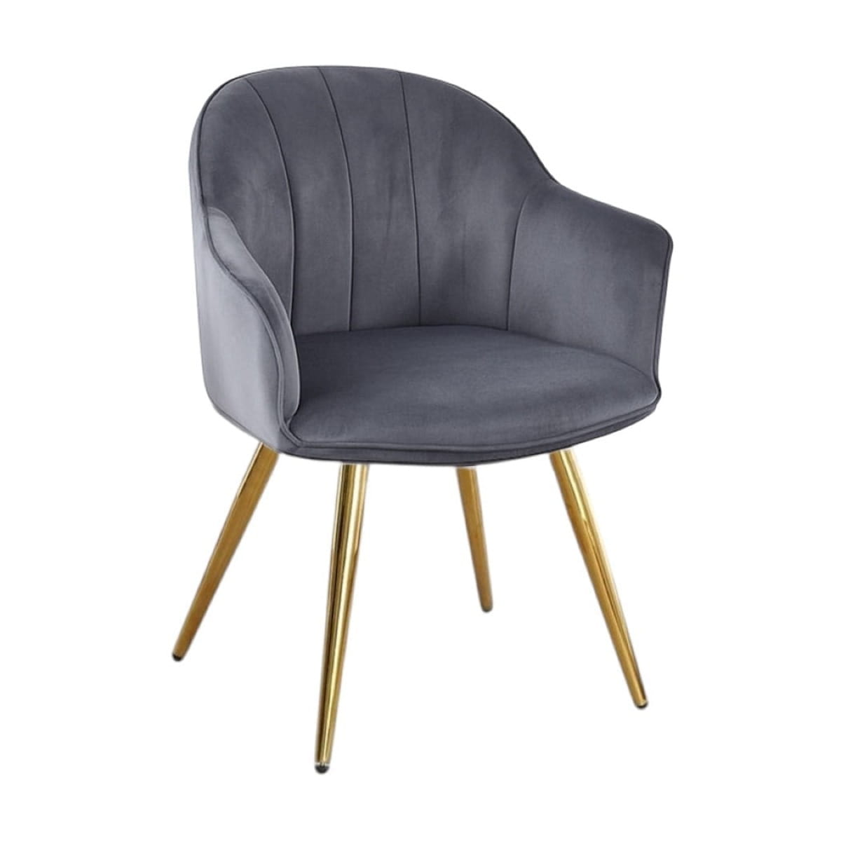 Fotel do jadalni z podłokietnikami Alaska ciemno szary, nogi złote tapicerowany pikowany welur