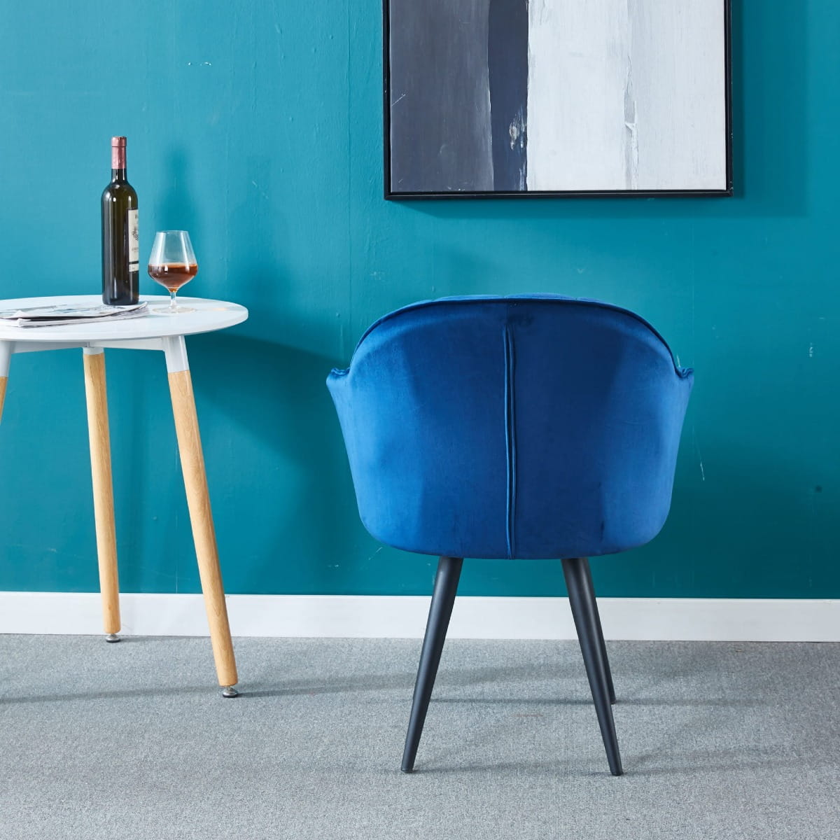 Fotel do salonu Kanada granatowy nogi białe tapicerowany welur