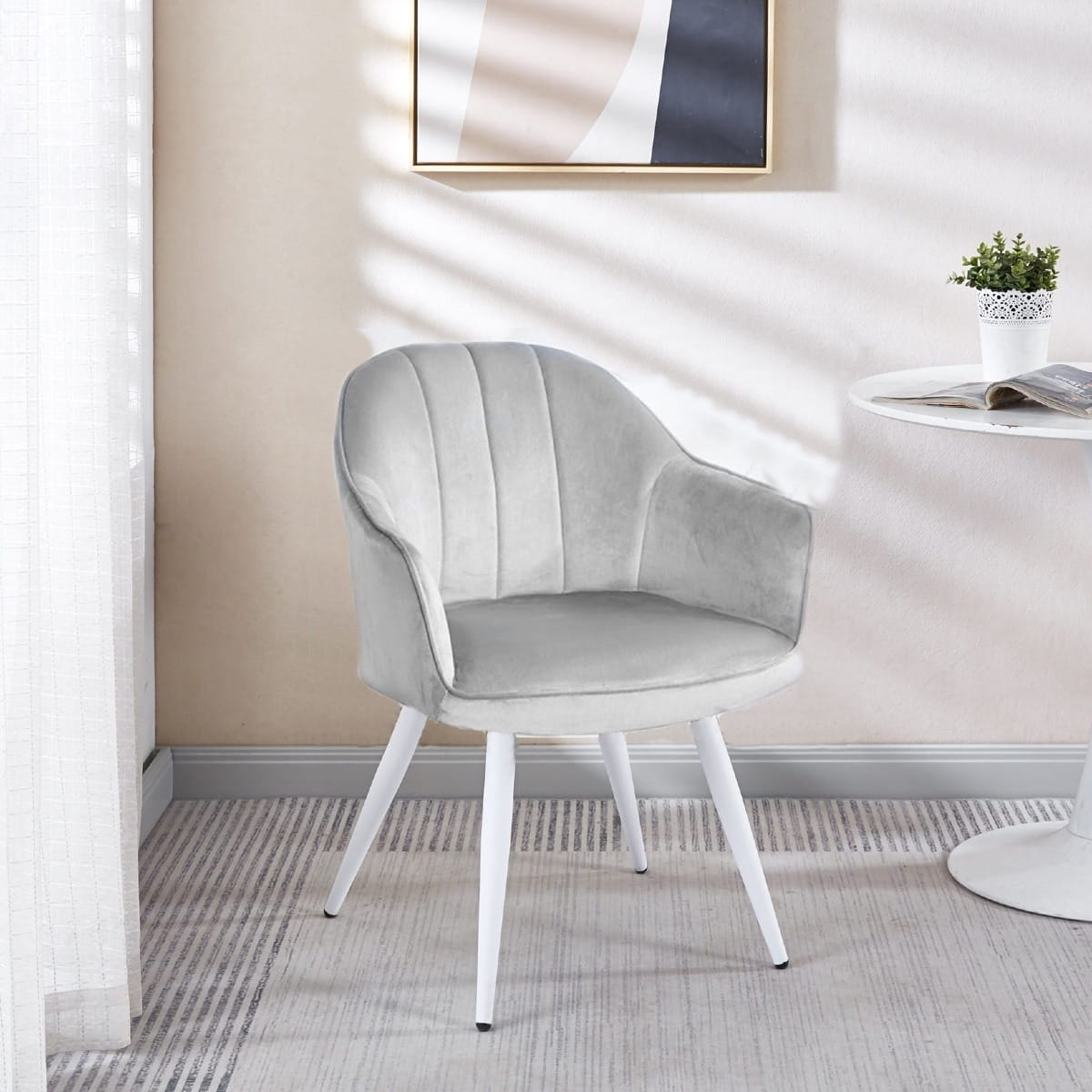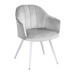 Fotel tapicerowany Alaska szary, nogi białe pikowany welur