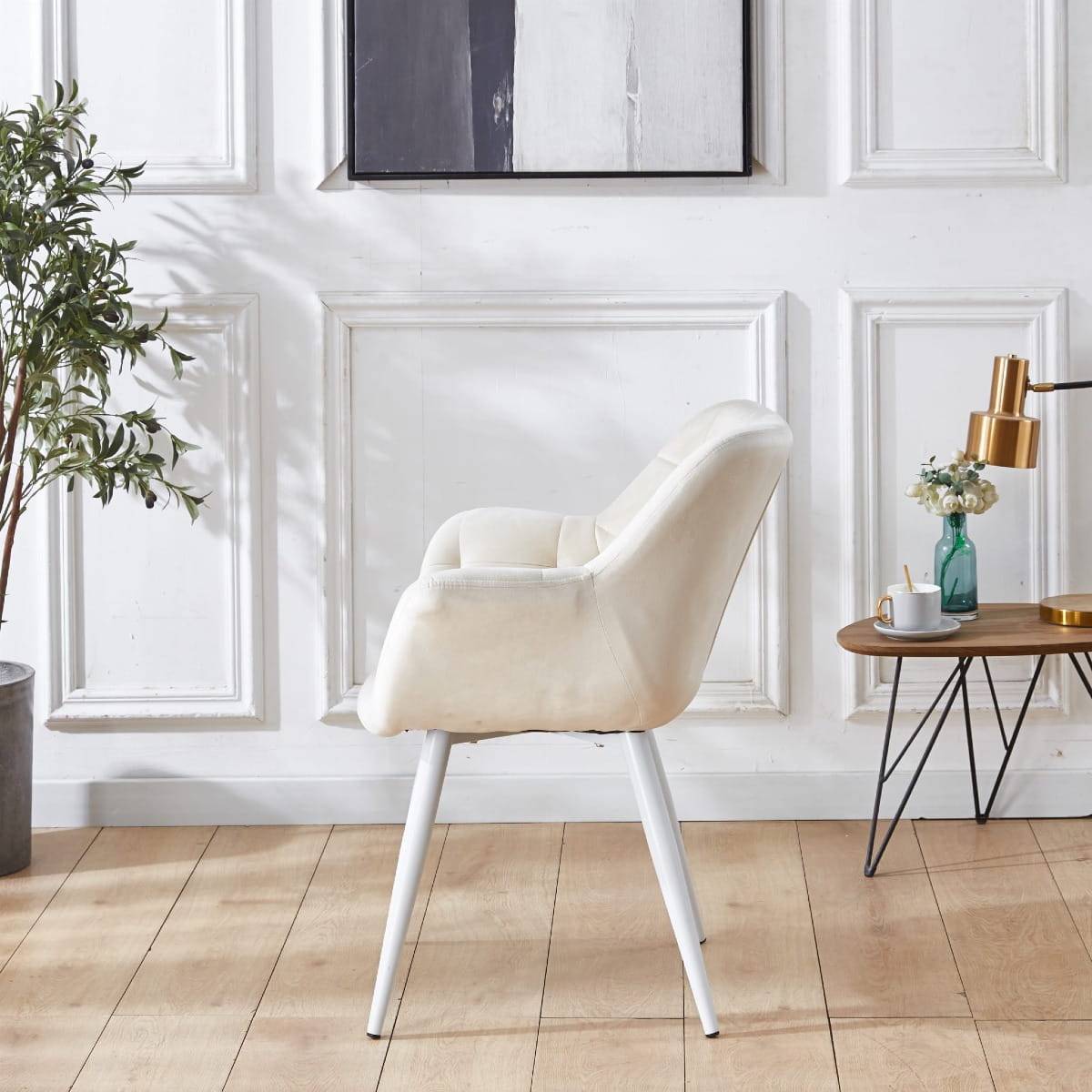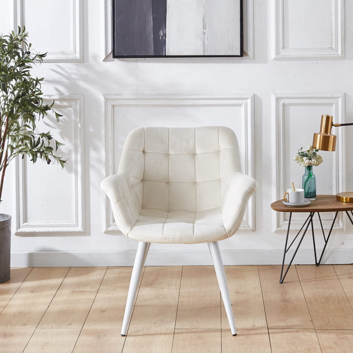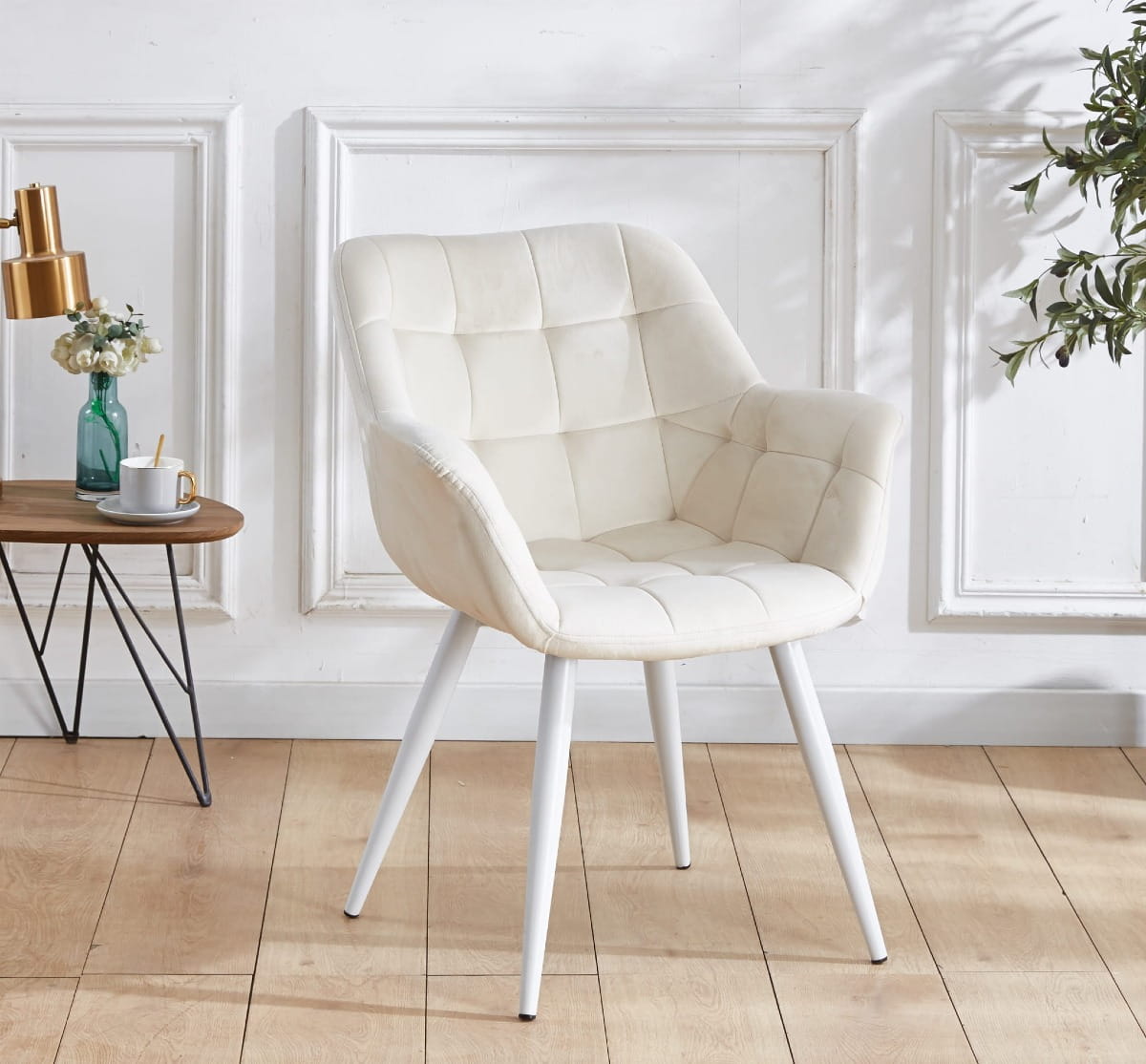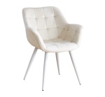Fotel tapicerowany Alaska kremowy, nogi białe pikowany welur