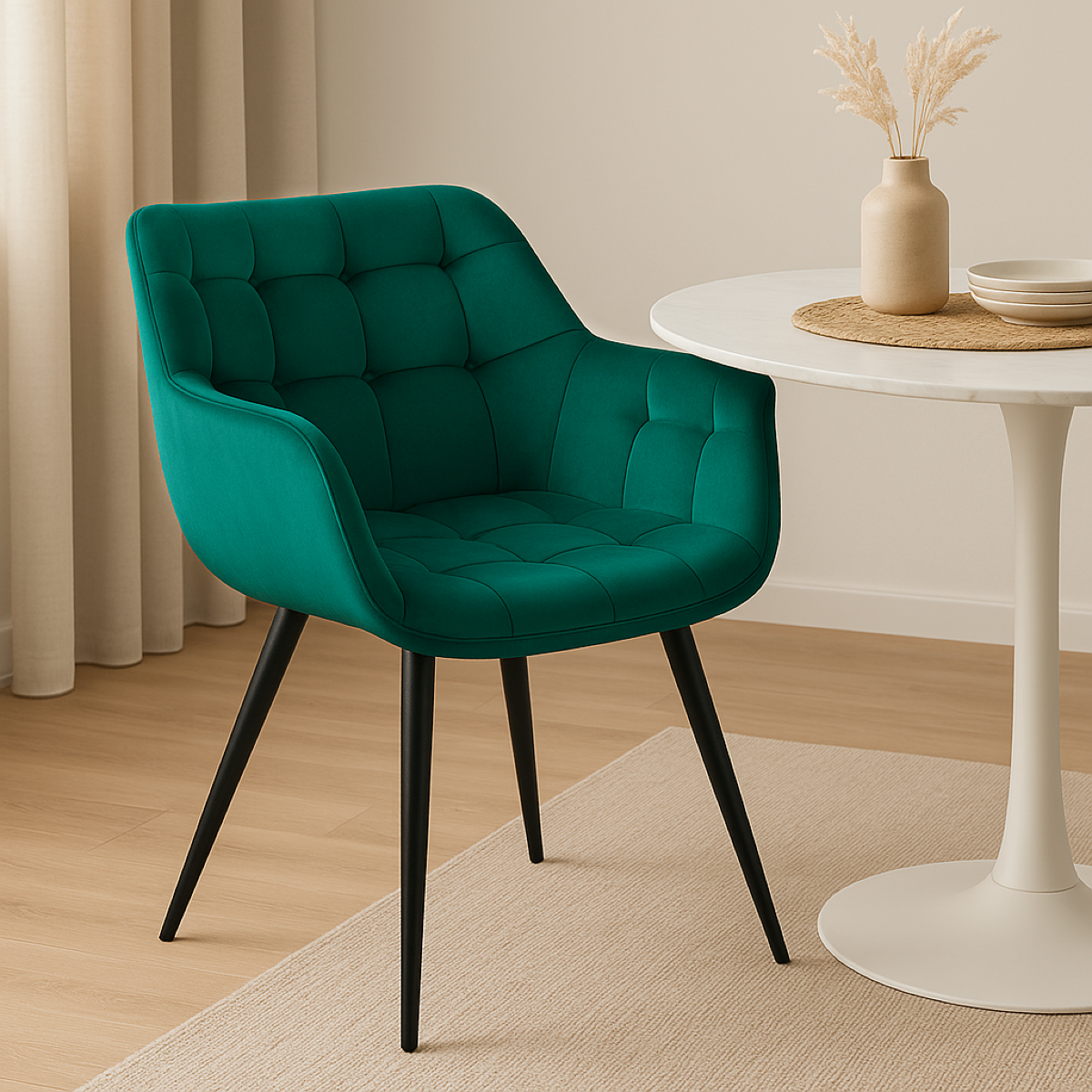 Dopełnij swoje wnętrze luksusowym stylem i wygodą. Jego elegancki design, luksusowy welur, solidne metalowe nogi i podłokietniki zapewniają nie tylko wyjątkowy wygląd, ale także komfort użytkowania na co dzień.