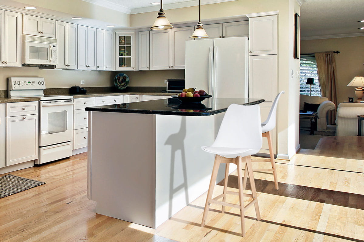 Hoker Kris biały nogi bukowe krzesło barowe z poduszką z eko skóry outlet