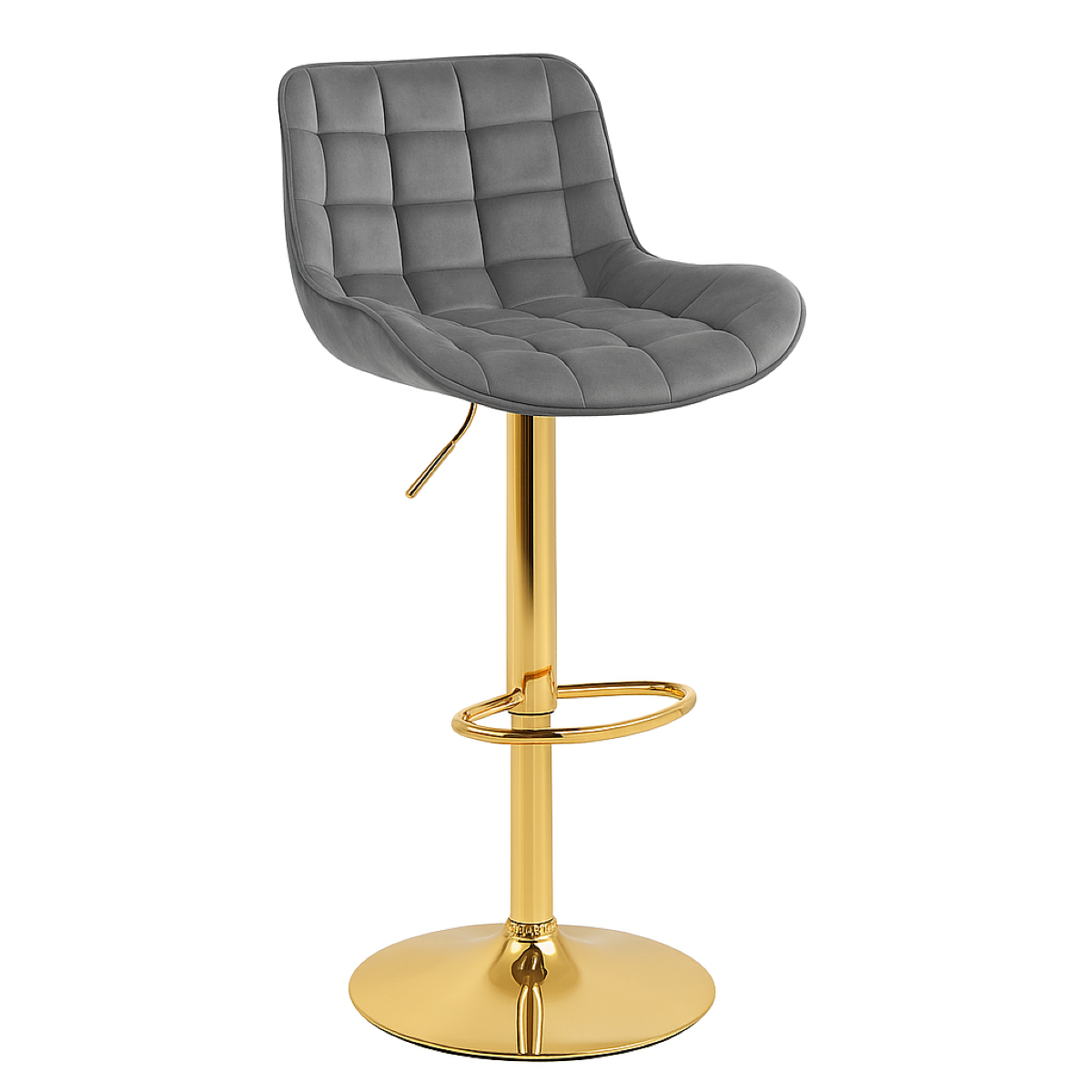Hoker regulowany Ivon ciemno szary welur, noga złota, regulowany, obrotowy