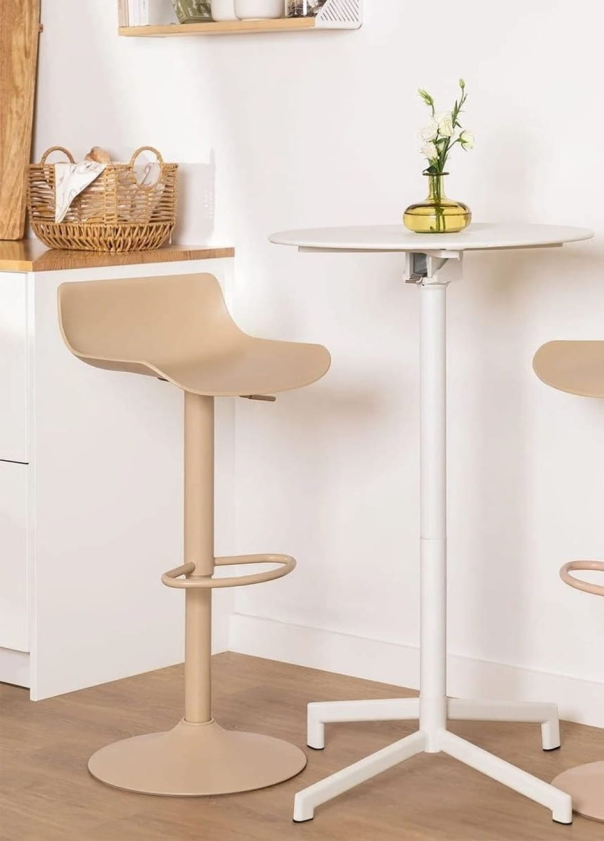 Hoker regulowany Sydney biały siedzisko drewniane, obrotowy, regulowany outlet