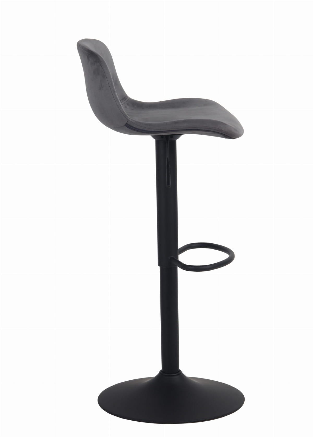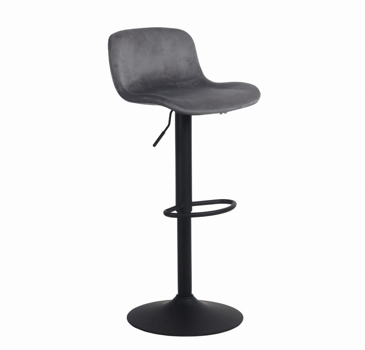 Krzesło barowe zapewni komfort nawet najbardziej wymagającym użytkownikom, dzięki ergonomicznej formie tworzywa oraz miękkiemu, tapicerowanemu welurem siedzisku. Żelazna noga malowana proszkowo na kolor czarny jest bardzo wytrzymała a wbudowany podnóżek zapewni komfort siedzenia. Wysokość stołka jest regulowana dzięki gazowemu mechanizmowi podnoszenia.