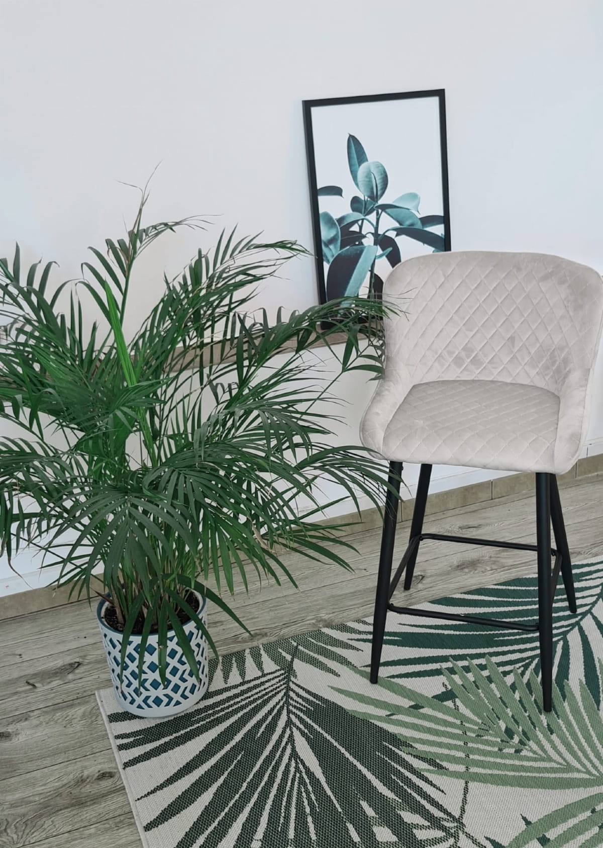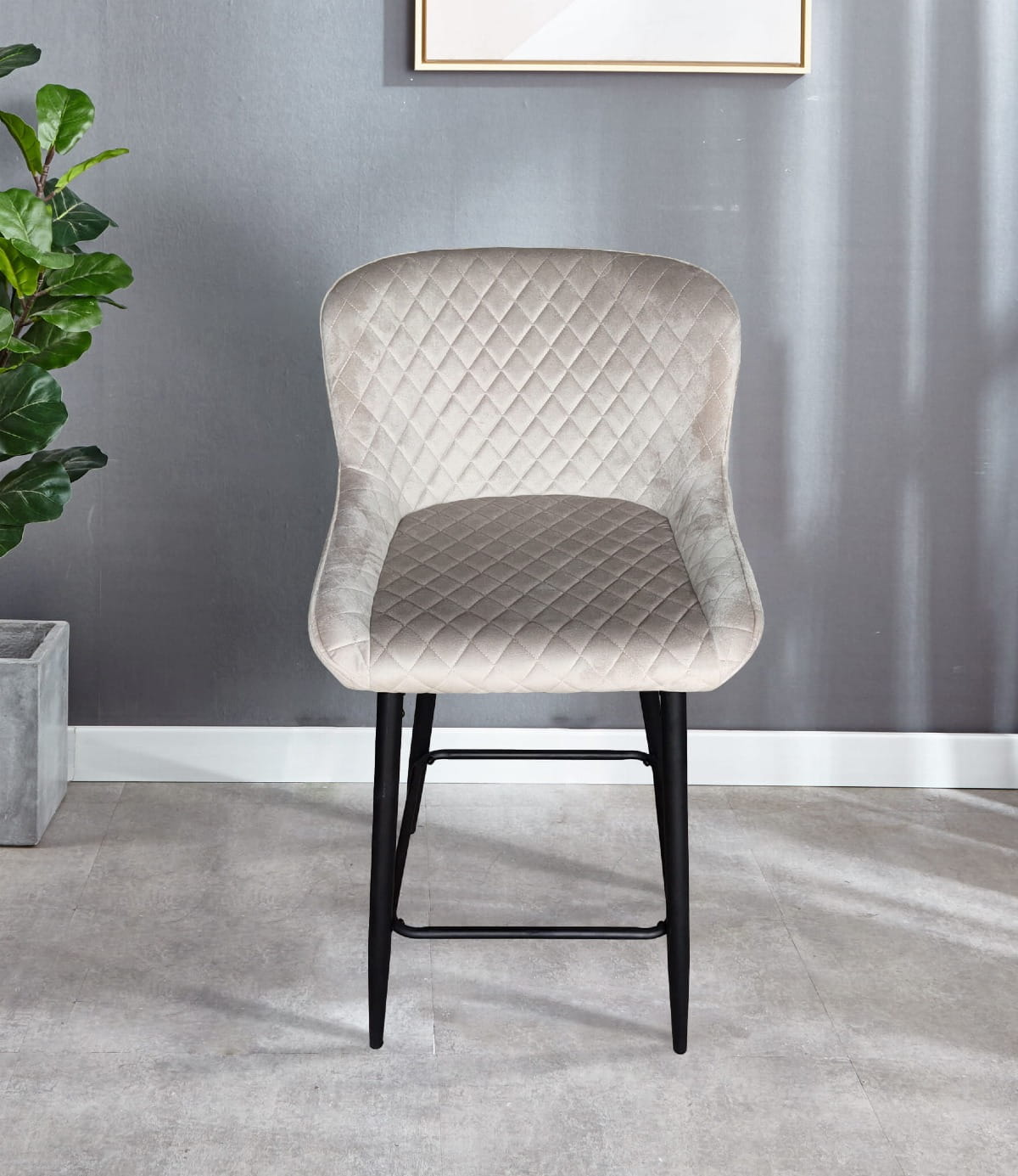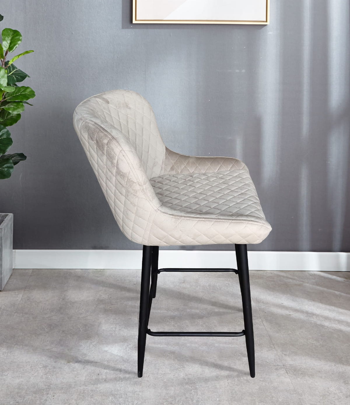 Hoker tapicerowany Nilson ciemno szary krzesło barowe welur outlet
