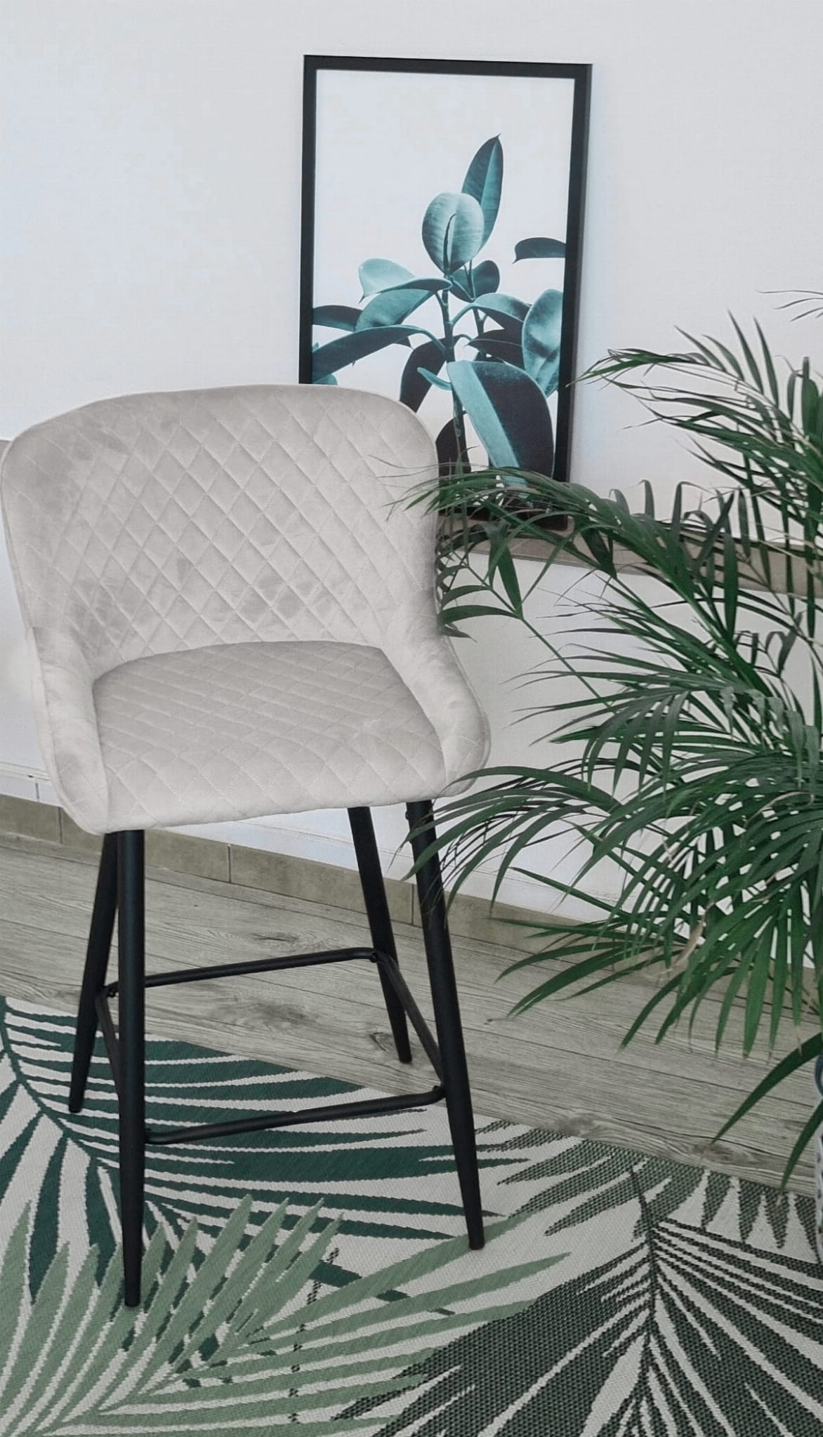 Hoker tapicerowany Neva ciemno szare krzesło barowe pikowany welur outlet