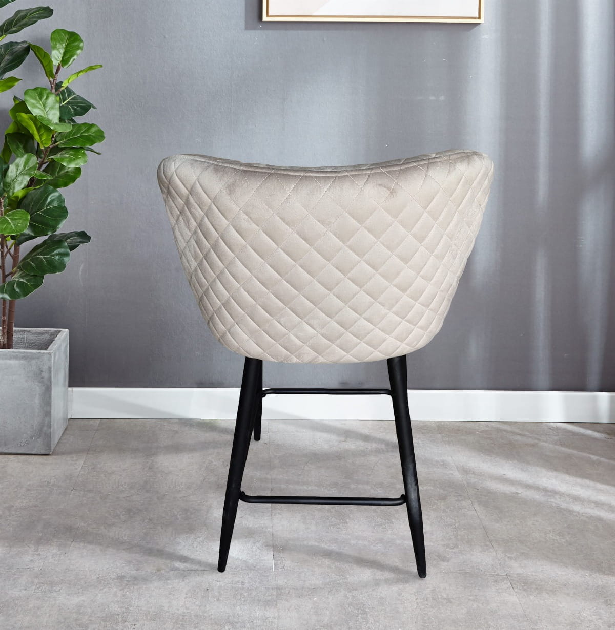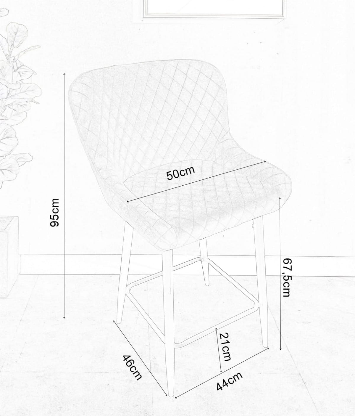 Hoker nasz doskonale nadaje się do wnętrz w stylu skandynawskim, i nowoczesnym. Wykonane z wytrzymałej tkaniny welurowej typu velvet w kolorze beżowym, krzesło będzie się pięknie wyróżniało na tle każdego pokoju a jednocześnie nie będzie przytłaczało wystroju dzięki swojej lekkiej formie. Stabilna metalowa podstawa malowana proszkowo na kolor czarny, cechuje się wysoką odpornością na uszkodzenia i trwałością na długie lata.