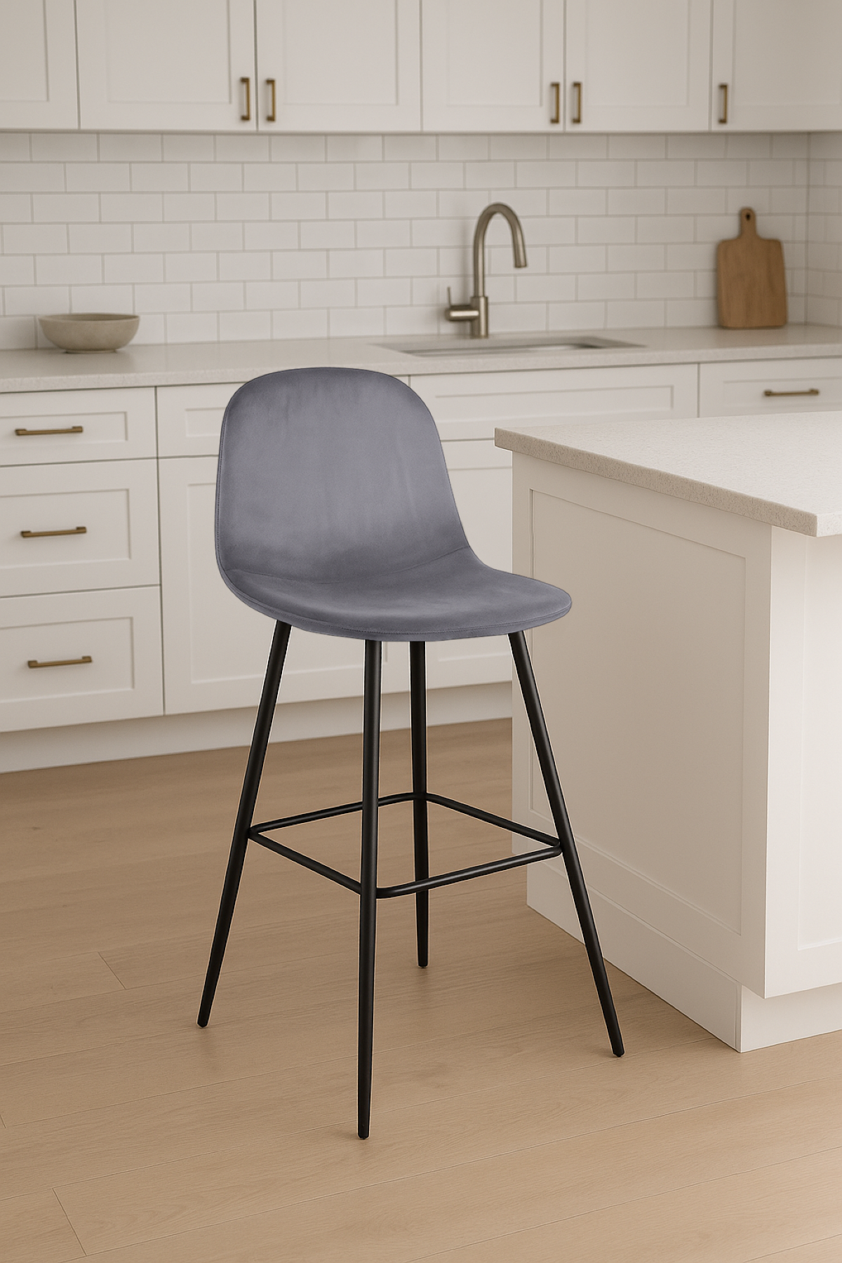 Czarne nogi wykonane z solidnego metalu gwarantują stabilność i trwałość hokera. Ich minimalistyczny design doskonale komponuje się z welurową tapicerką, tworząc efektowne połączenie kontrastów. Ponadto, te krzesło barowe doskonale wpisuje się w różnorodne aranżacje wnętrz, od nowoczesnych po bardziej klasyczne, sprawiając, że jest uniwersalnym dodatkiem do salonu.