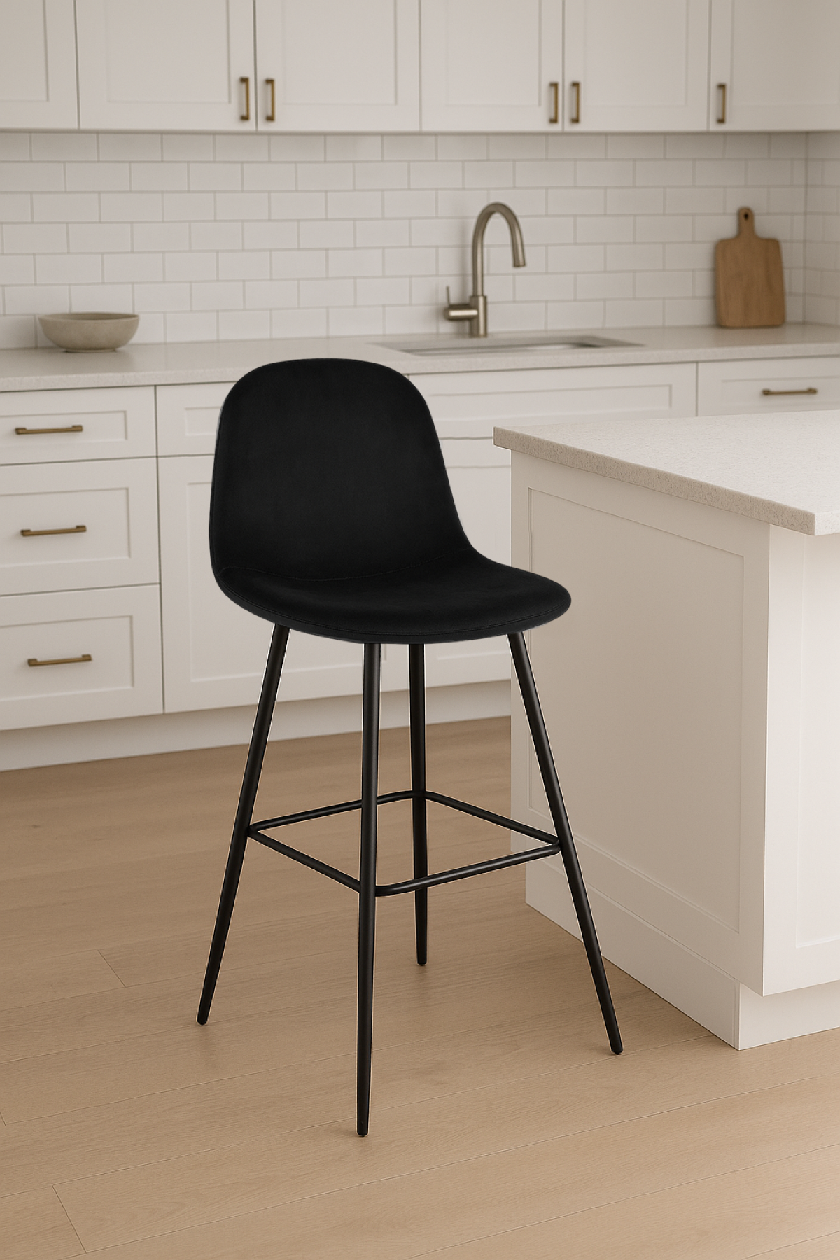 Czarne nogi wykonane z solidnego metalu gwarantują stabilność i trwałość hokera. Ich minimalistyczny design doskonale komponuje się z welurową tapicerką, tworząc efektowne połączenie kontrastów. Ponadto, te krzesło barowe doskonale wpisuje się w różnorodne aranżacje wnętrz, od nowoczesnych po bardziej klasyczne, sprawiając, że jest uniwersalnym dodatkiem do salonu.