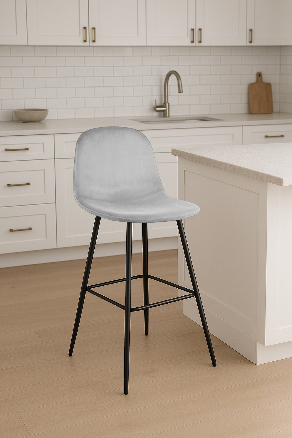 Hoker tapicerowany Nilson szary krzesło barowe welur 75 cm