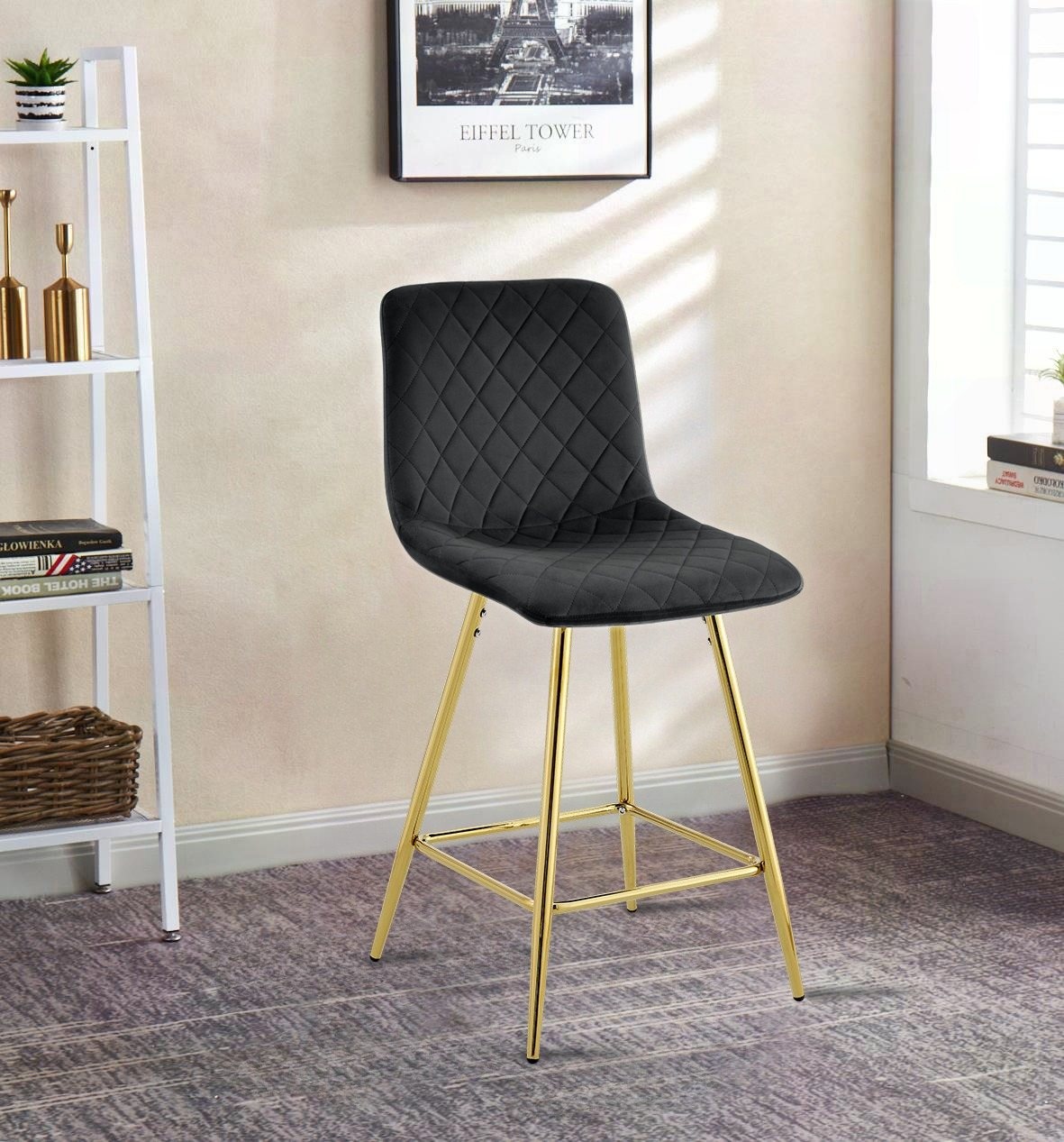 Dodaj swojej kuchni lub jadalni luksusowego charakteru z hokerem Adel tapicerowanym welurem na eleganckich złotych nogach. Ten stylowy mebel to idealne połączenie komfortu i nowoczesnej estetyki z nutą glamour. Wysokość siedziska 62 cm sprawia, że świetnie sprawdzi się przy wyspach i półwyspach kuchennych.