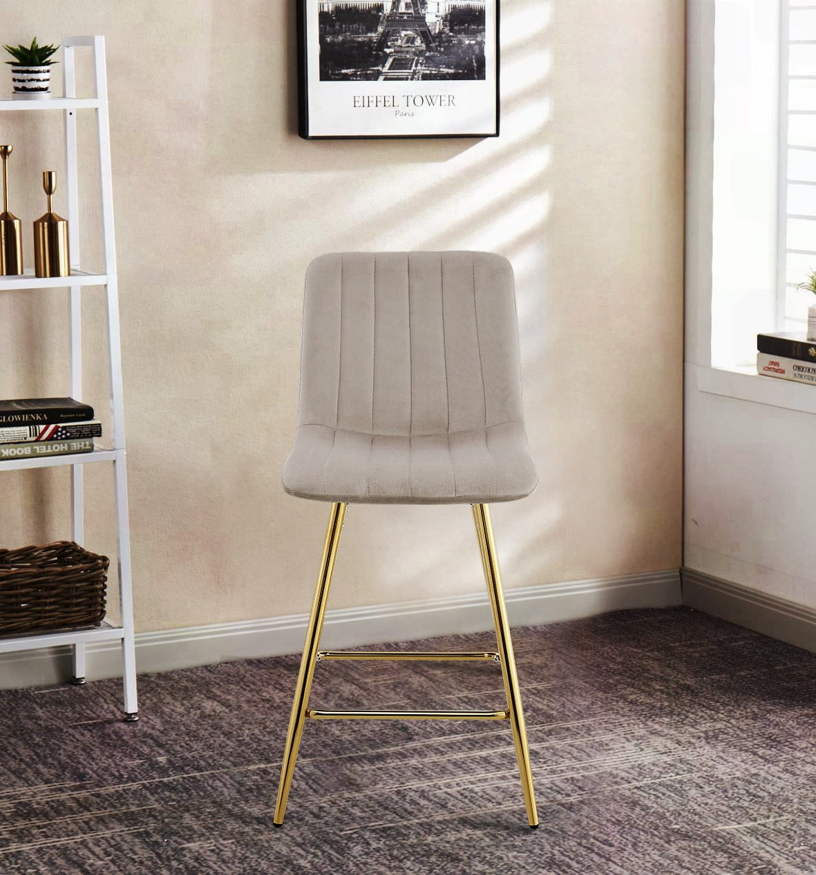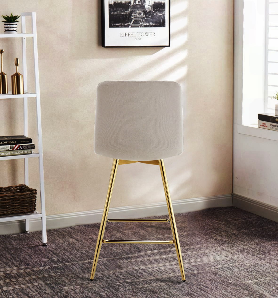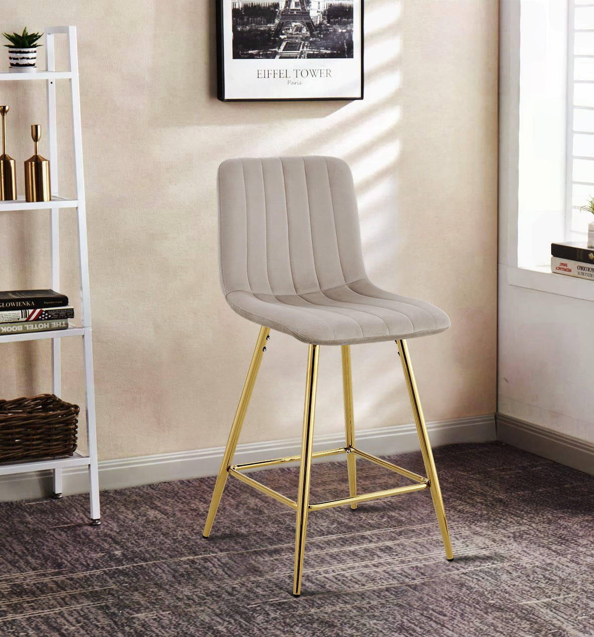 Dodaj swojej kuchni lub jadalni luksusowego charakteru z hokerem Alan tapicerowanym welurem na eleganckich złotych nogach. Ten stylowy mebel to idealne połączenie komfortu i nowoczesnej estetyki z nutą glamour. Wysokość siedziska 62 cm sprawia, że świetnie sprawdzi się przy wyspach i półwyspach kuchennych.