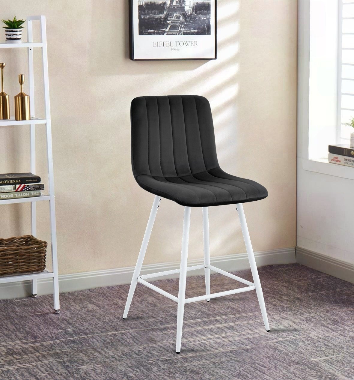 Hoker tapicerowany welurem Alan 62 cm – białe nogi, nowoczesna elegancja