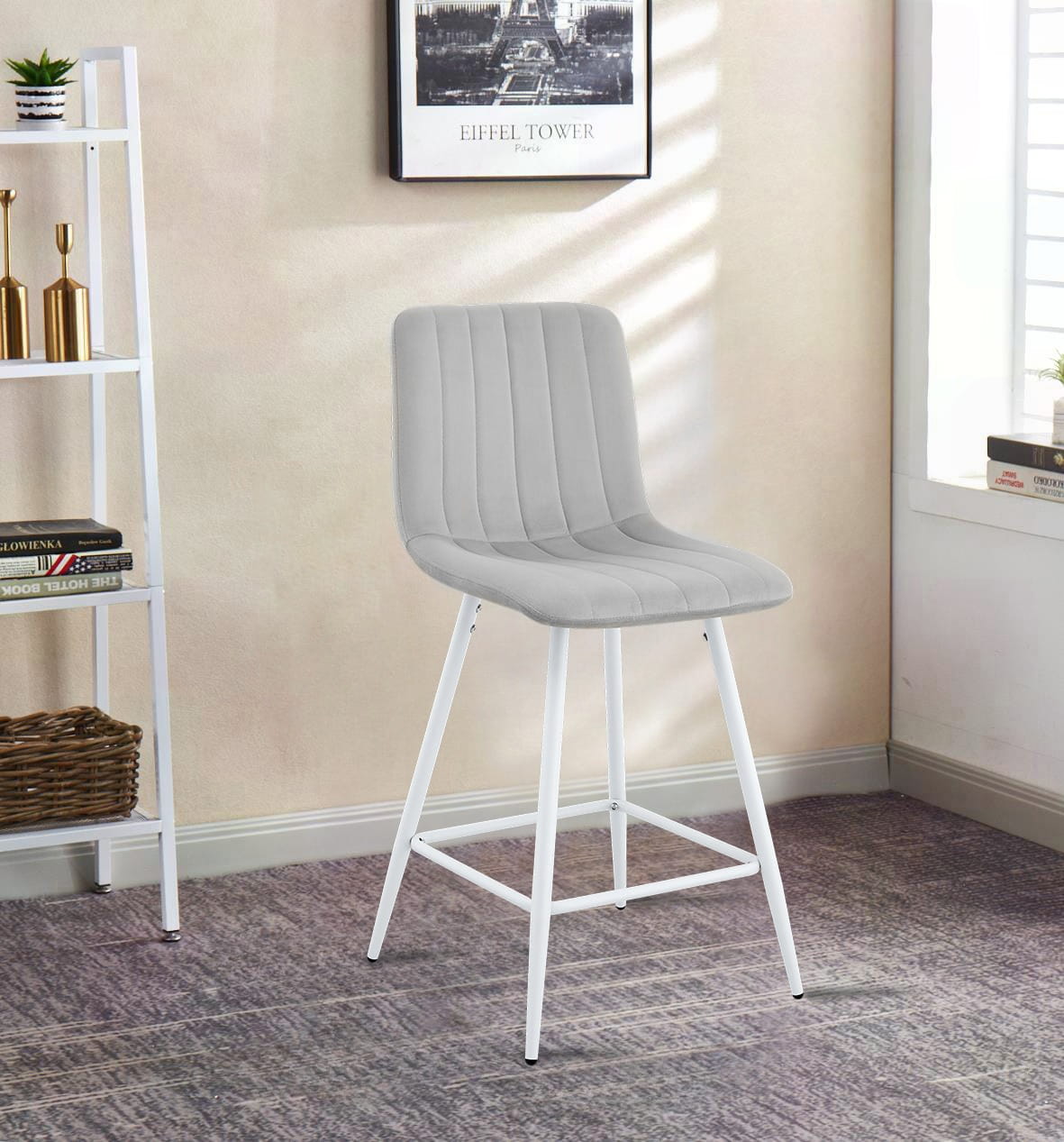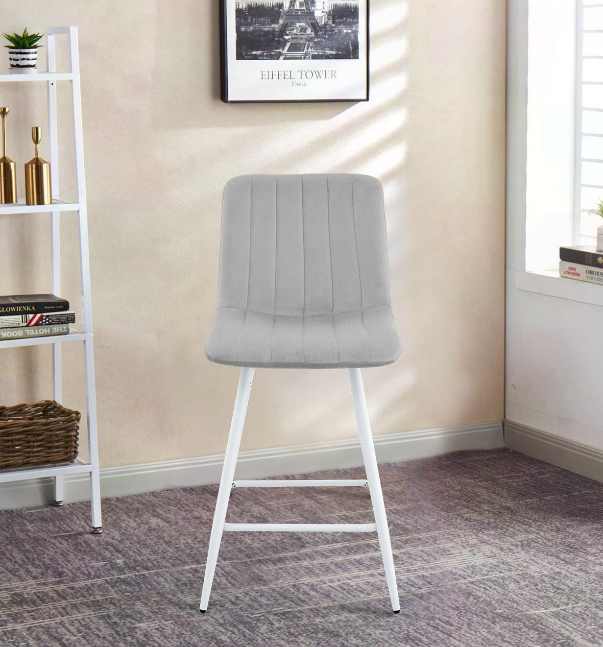 Hoker tapicerowany welurem Alan 62 cm – białe nogi, nowoczesna elegancja