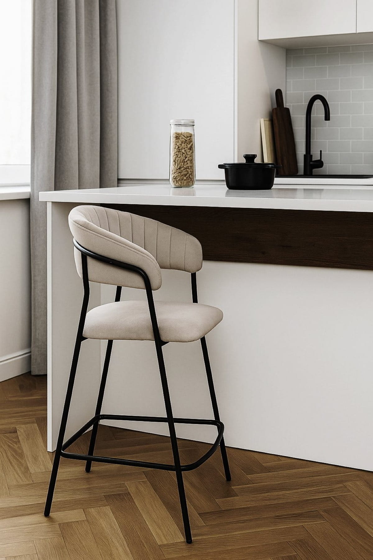 Krzesełko barowe welurowe na czarnych nogach to nie tylko siedzisko - to prawdziwa ozdoba salonu, która nadaje pomieszczeniu ekskluzywnego charakteru. To doskonały wybór dla tych, którzy pragną połączyć komfort z designerskim stylem, tworząc unikatową przestrzeń do spędzania czasu.