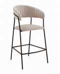 Hoker tapicerowany niski Odessa beżowy, nogi czarne, krzesło barowe 65 cm