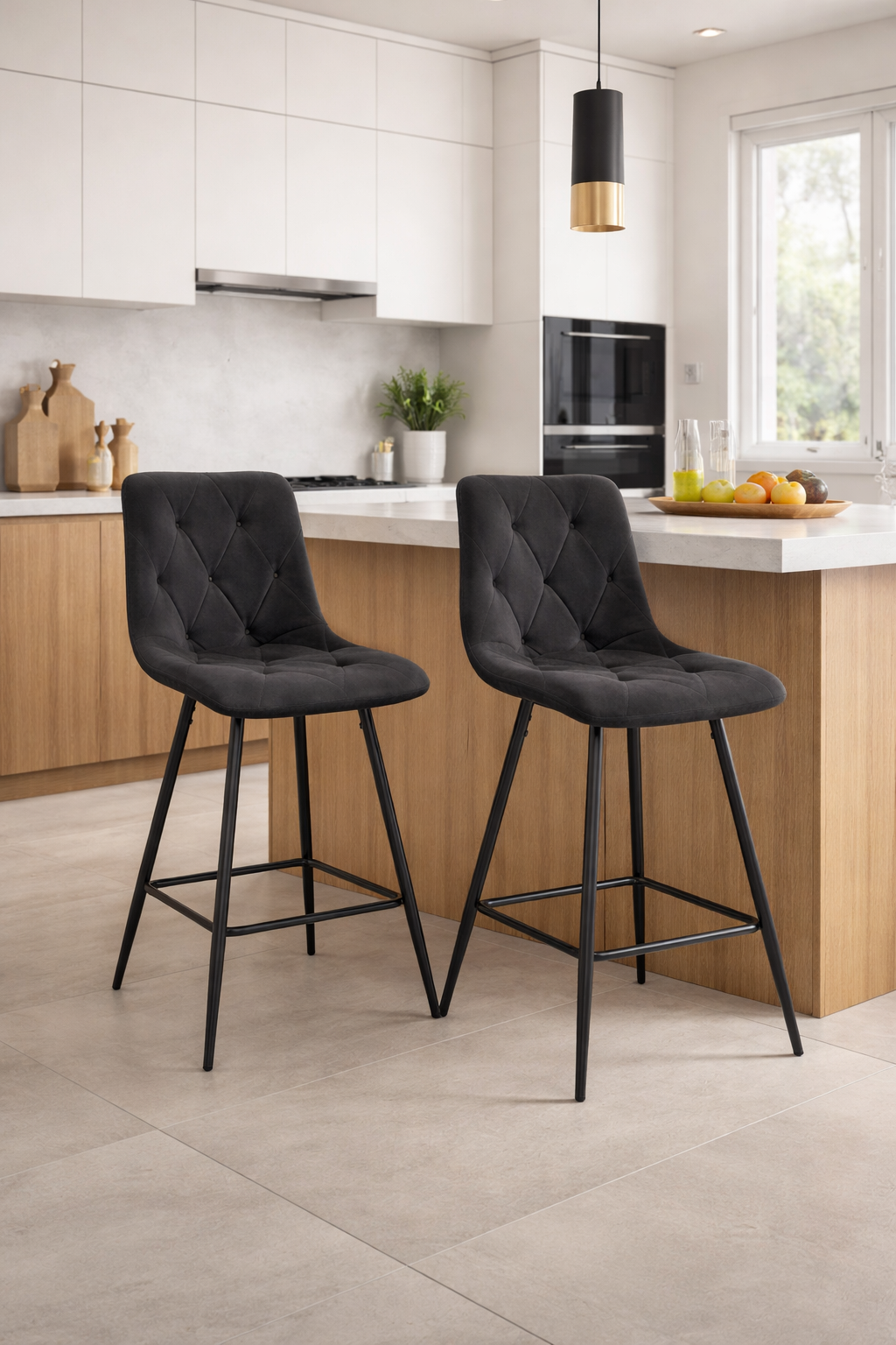 Siedzisko pokryte zostało miękkim, wysokiej jakości welurem, który nadaje całości eleganckiego wyglądu i zapewnia wysoki komfort siedzenia. Cztery stabilne metalowe nogi w czarnym kolorze gwarantują trwałość oraz nowoczesną estetykę, która świetnie komponuje się z wnętrzami w stylu loft, modern czy skandynawskim.
