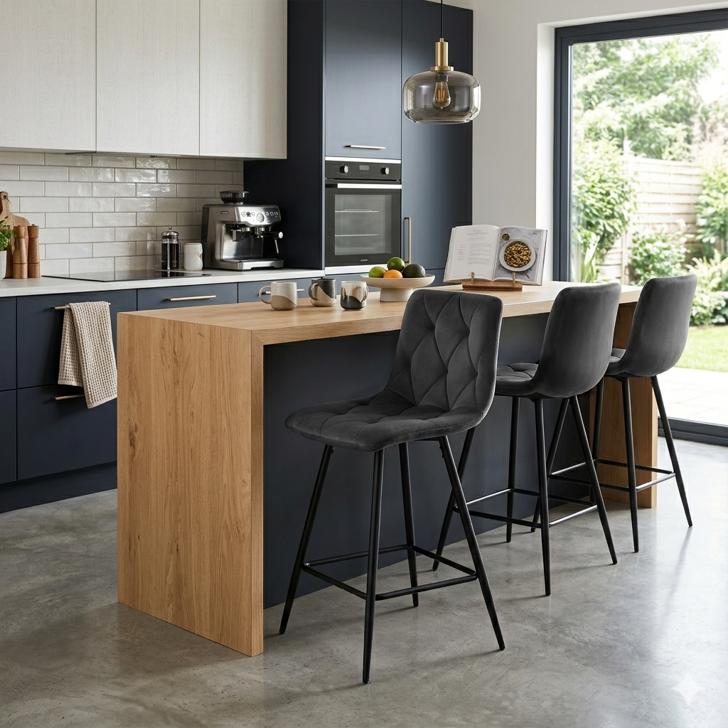 Wysokość siedziska: 62 cm – idealna do wysp kuchennych