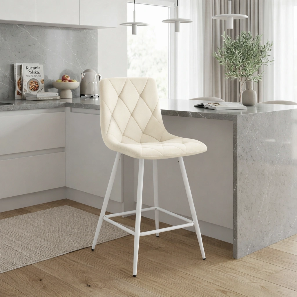 Hoker tapicerowany niski Tom kremowy, nogi białe 62 cm