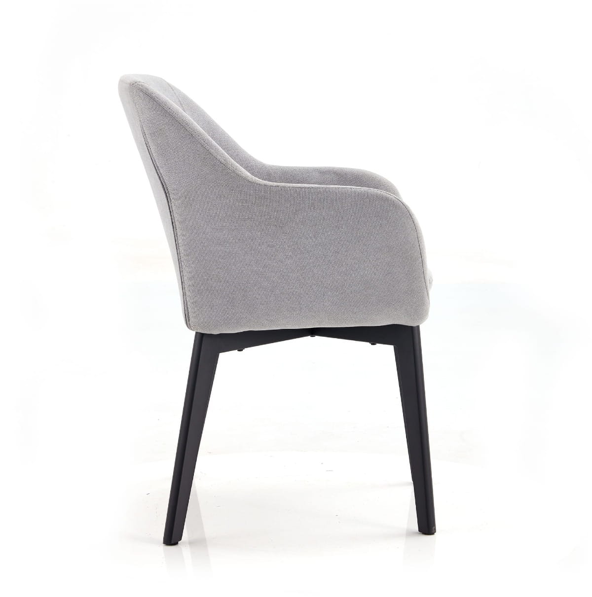 Krzesło nasze doskonale nadaje się do wnętrz w stylu skandynawskim, i nowoczesnym. Wykonane z wytrzymałej tkaniny w kolorze jasno szarym, krzesło będzie się pięknie wyróżniało na tle każdego pokoju a jednocześnie nie będzie przytłaczało wystroju dzięki swojej lekkiej formie. Stabilna metalowa podstawa malowana proszkowo na kolor czarny, cechuje się wysoką odpornością na uszkodzenia i trwałością na długie lata.