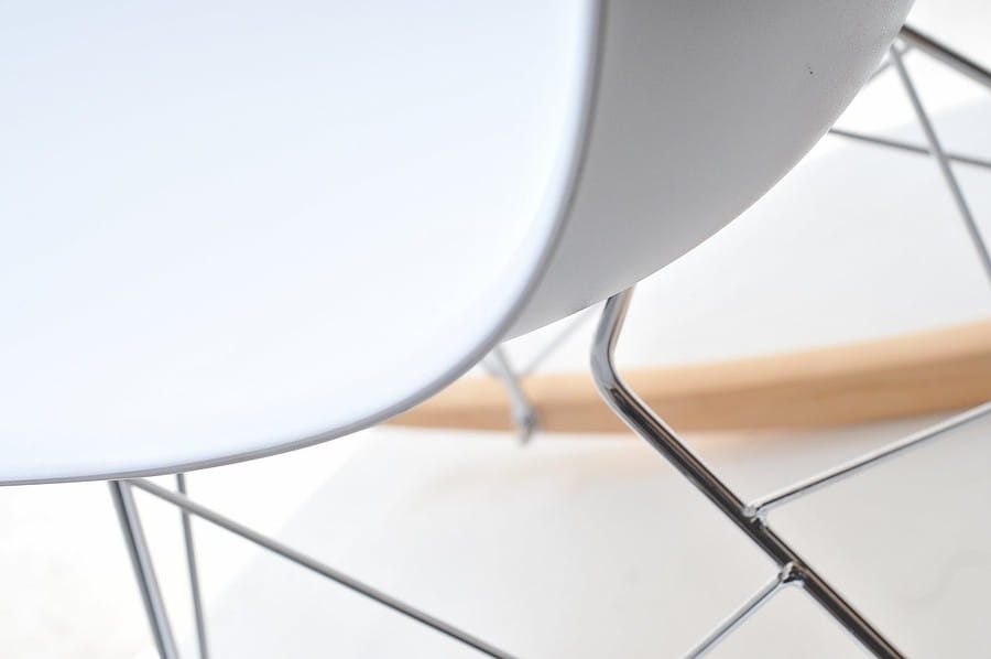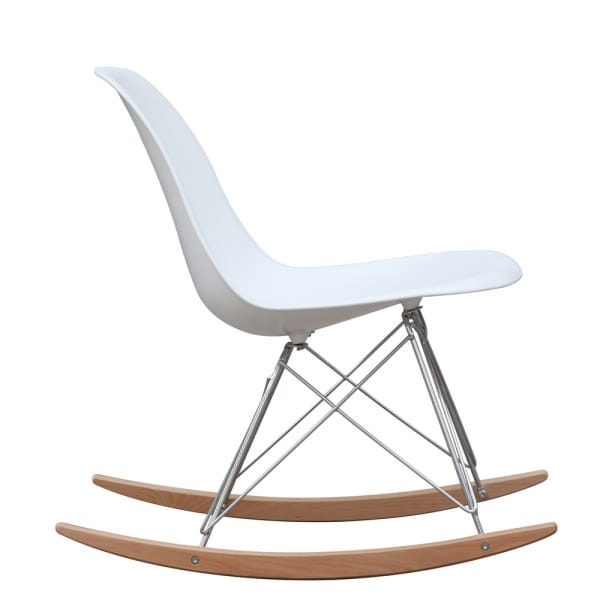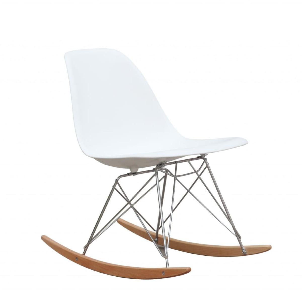 Ergonomiczne siedzisko wykonane z wytrzymałego polipropylenu dopasowuje się do kształtu ciała, zapewniając komfort nawet podczas długiego użytkowania. Chromowany stelaż nadaje całości lekkości i nowoczesnego charakteru, a bukowe płozy wprowadzają ciepło naturalnego drewna i przyjemny rytm bujania.