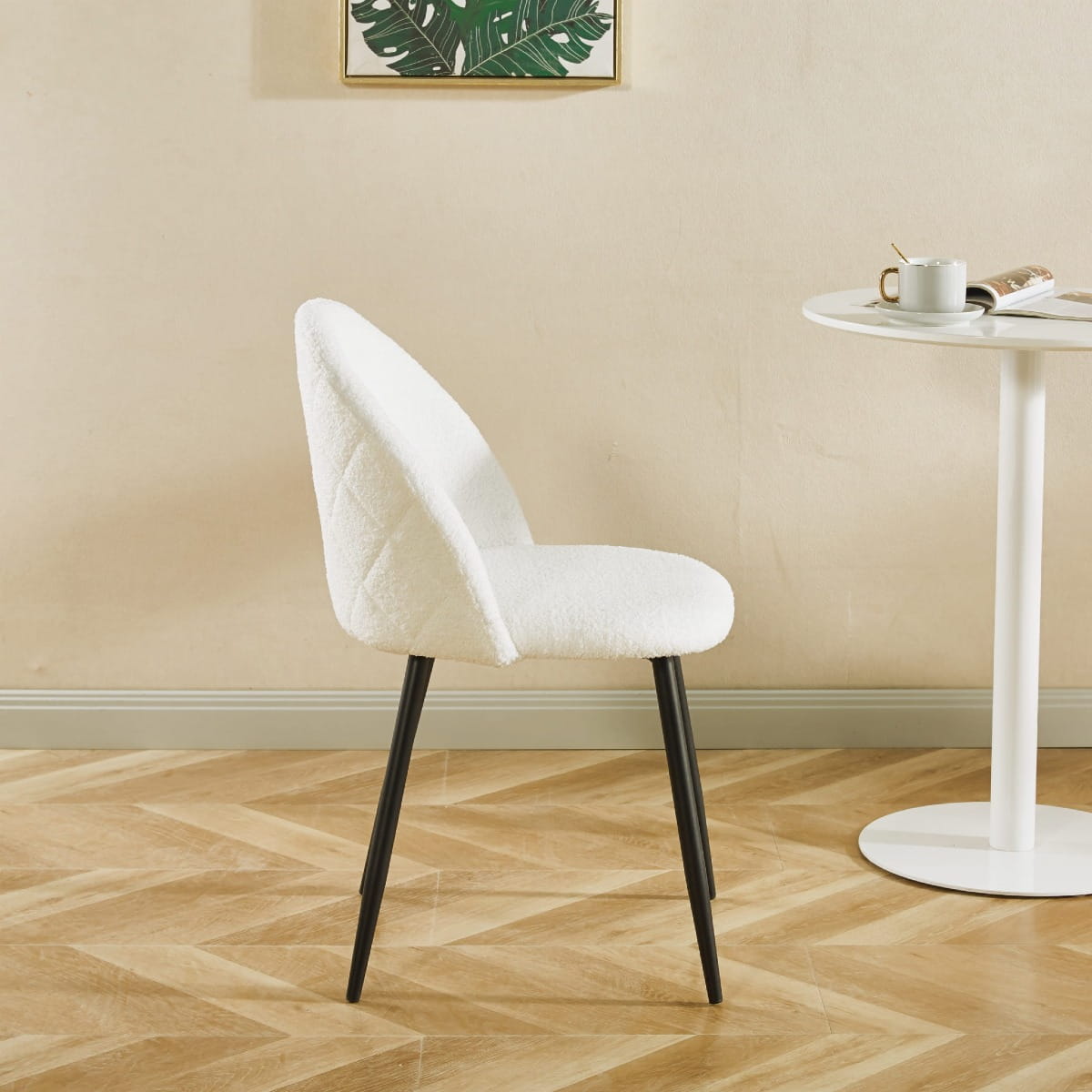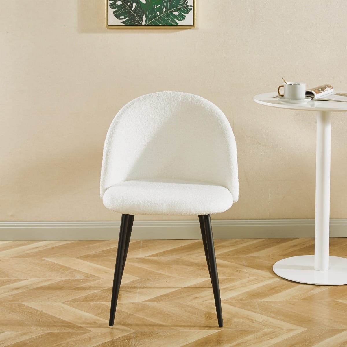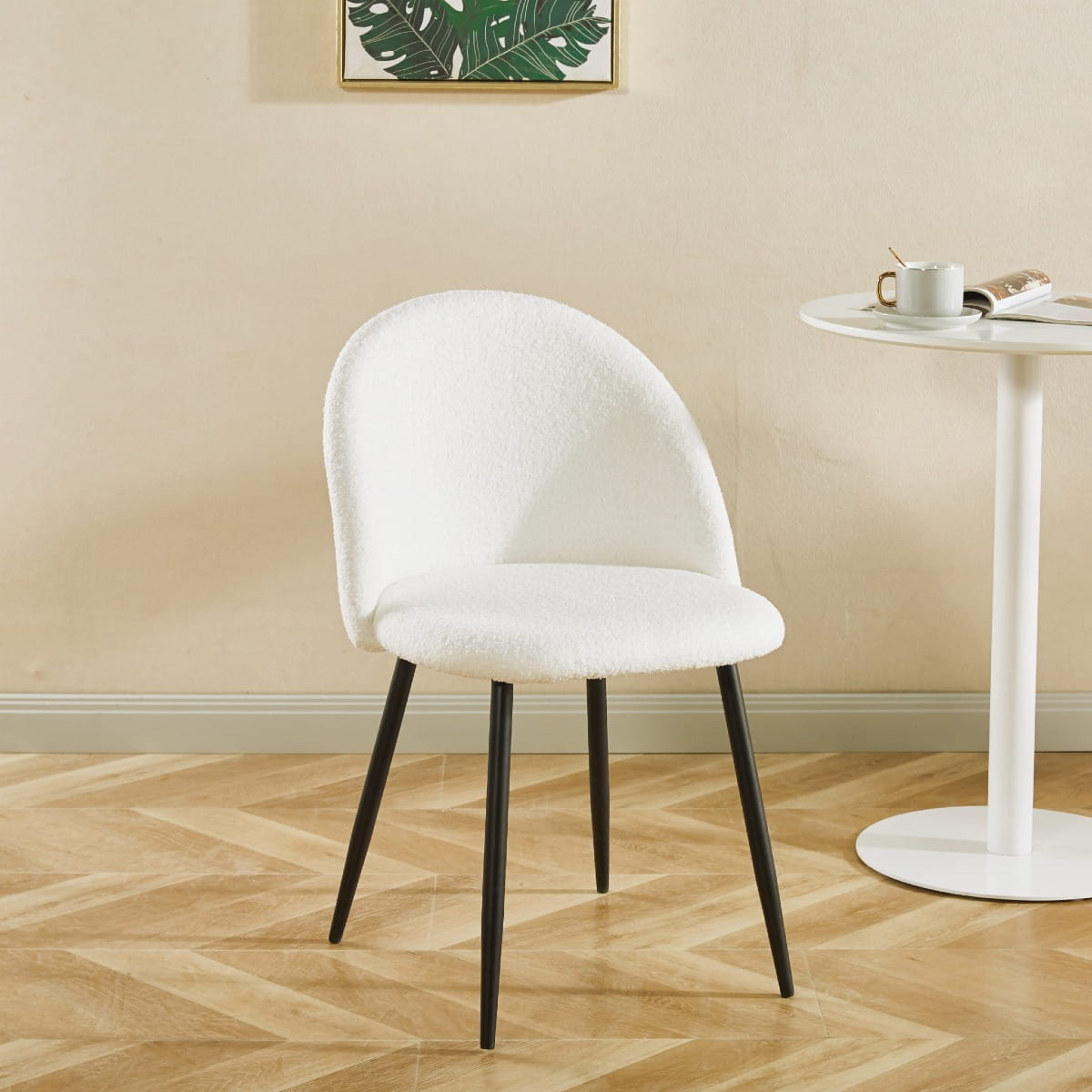 Krzesło do jadalni z tkaniny szenilowej Odessa Teddy kremowe nogi czarne boucle chenilla