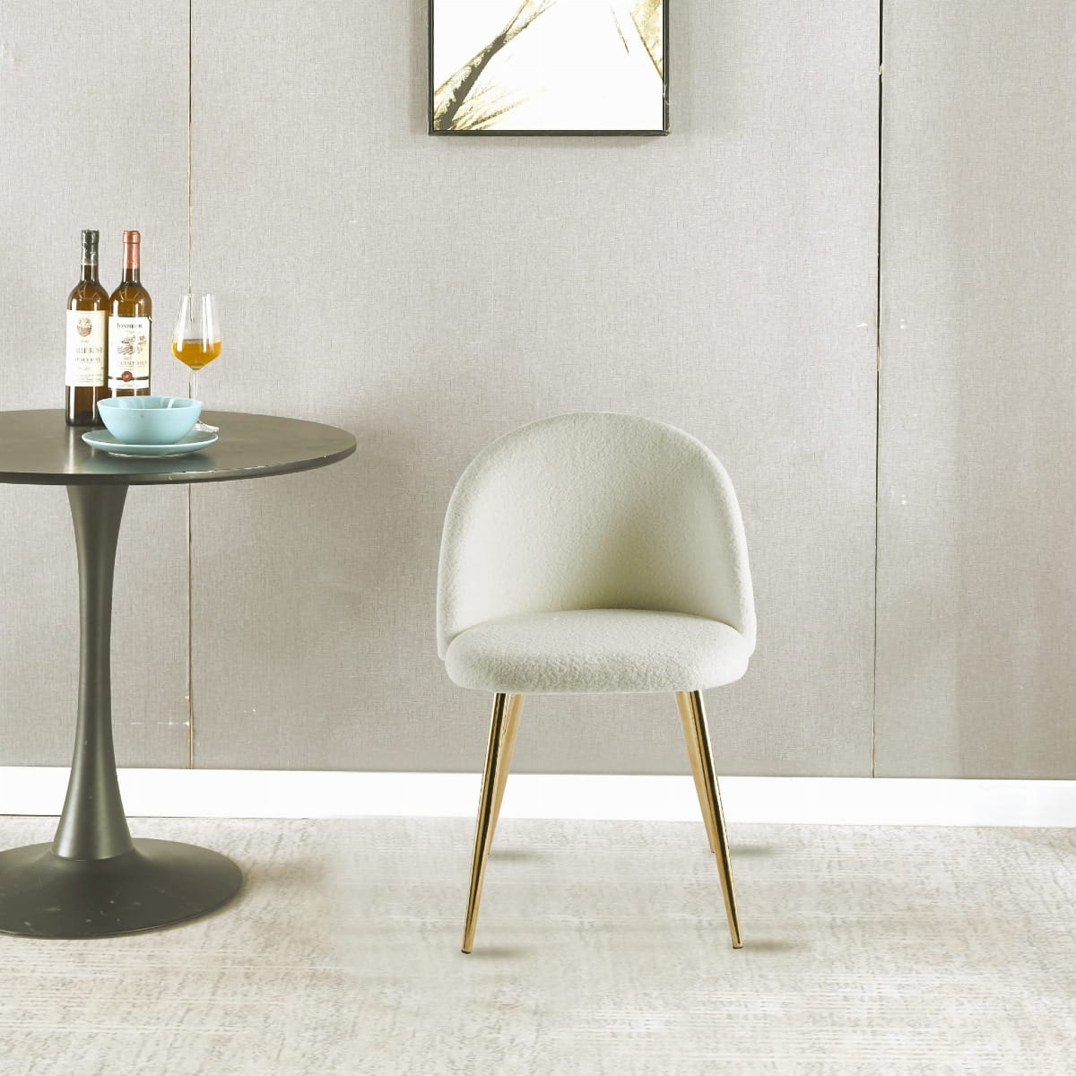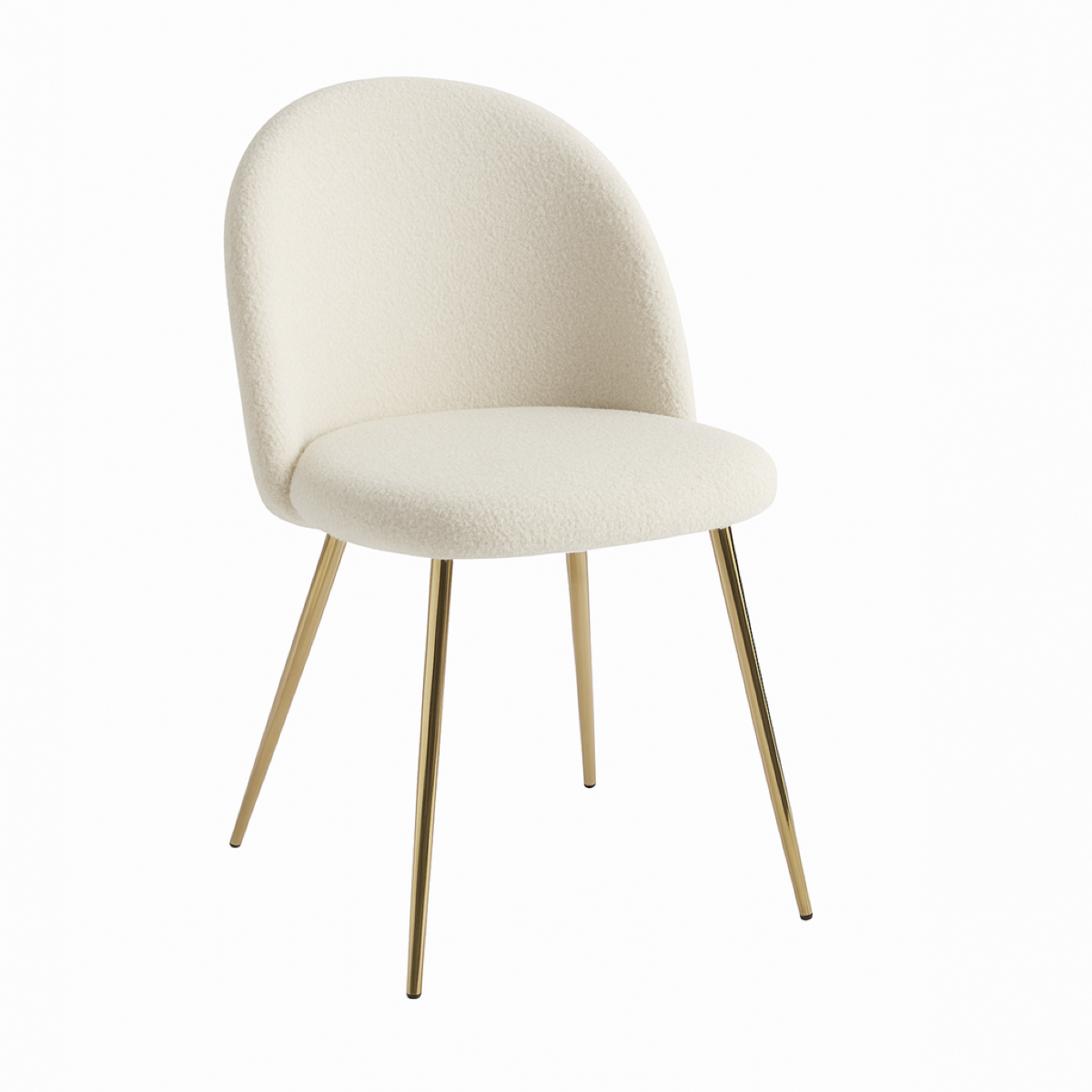 Krzesło do jadalni z tkaniny szenilowej Odessa Teddy kremowe nogi złote boucle chenilla