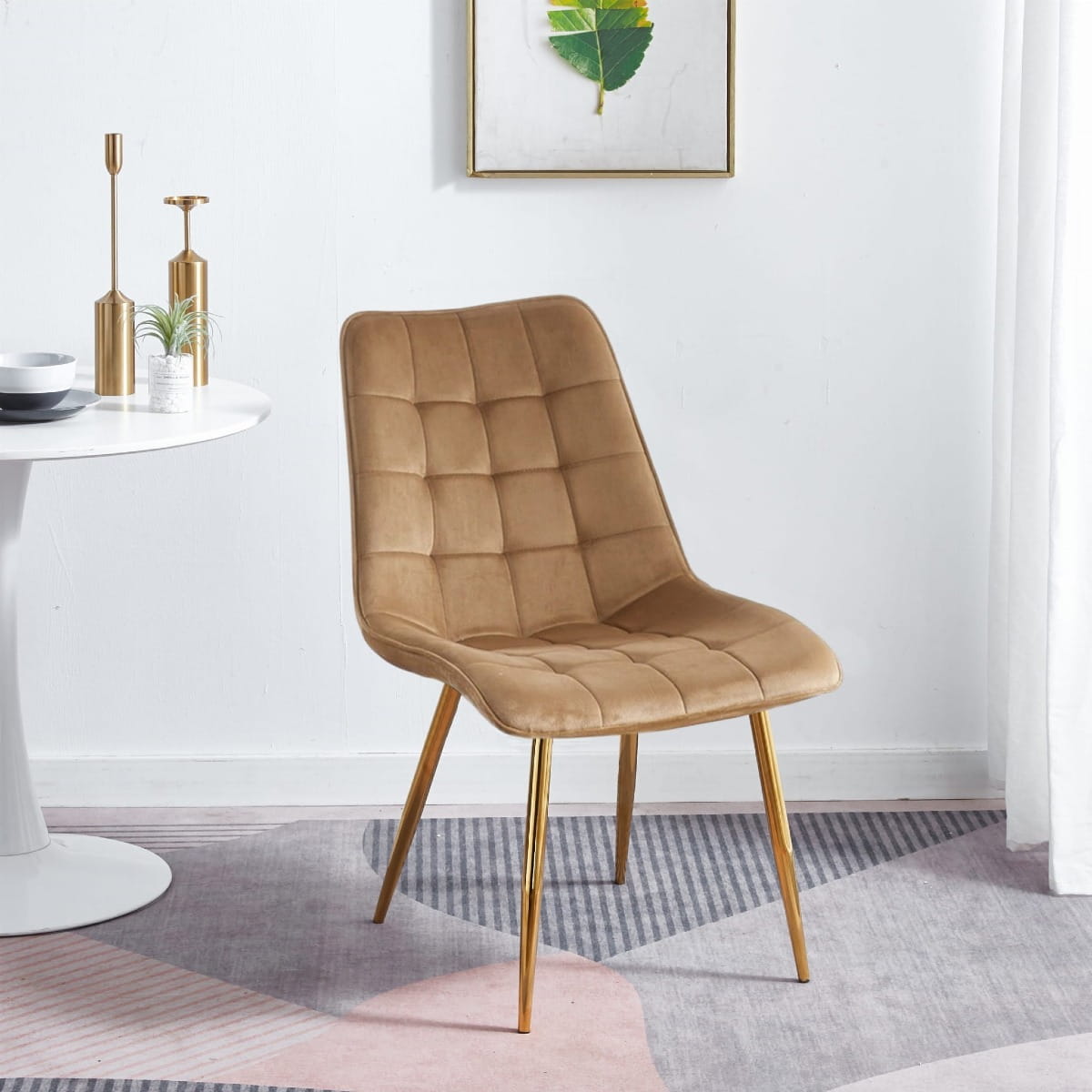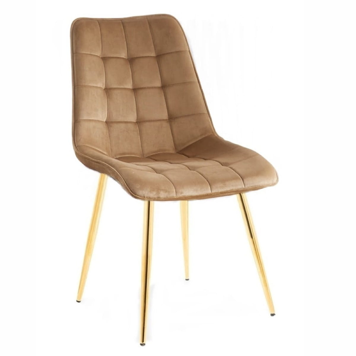 Krzesło tapicerowane Adel jasno brązowe welur, nogi złote