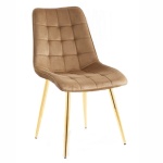 Krzesło tapicerowane Tom jasno brązowe welur, nogi złote