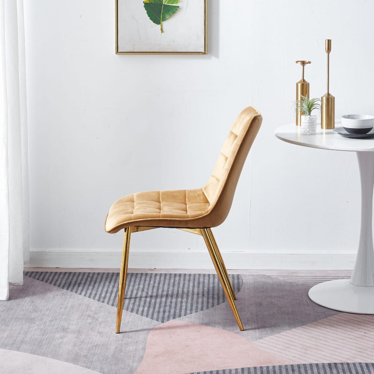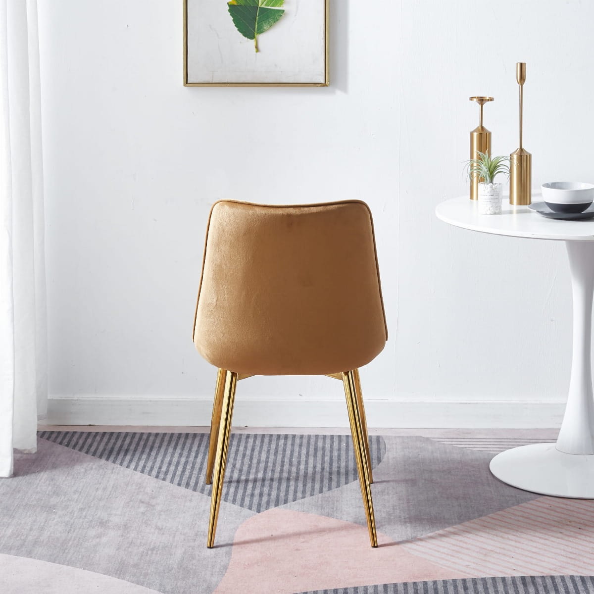 Krzesło doskonale nadaje się do wnętrz w stylu skandynawskim, i nowoczesnym. Wykonane z wytrzymałej tkaniny welurowej typu velvet w kolorze curry, krzesło będzie się pięknie wyróżniało na tle każdego pokoju a jednocześnie nie będzie przytłaczało wystroju dzięki swojej lekkiej formie. Stabilna metalowa podstawa, cechuje się wysoką odpornością na uszkodzenia i trwałością na długie lata.