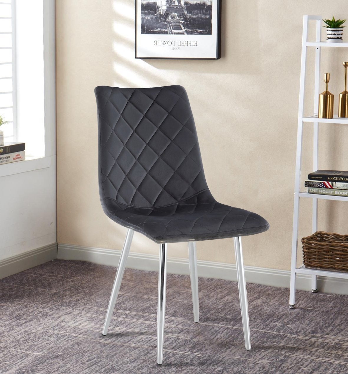 Krzesło tapicerowane Tom ciemno szare, nogi chrom welur