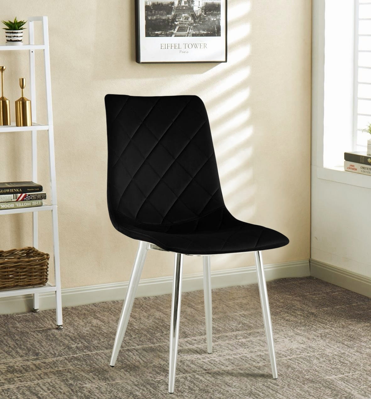 Design: Adel Adel wyróżnia się minimalistycznym, a jednocześnie efektownym designem. Jego tapicerowane siedzisko z weluru wzbudza zachwyt swoją miękkością i przyjemnością użytkowania, podczas gdy chromowane metalowe nogi dodają mu nowoczesnego blasku i wyjątkowej elegancji. To krzesło, które zarówno wizualnie, jak i praktycznie, stanie się nieodłącznym elementem Twojego wnętrza.
