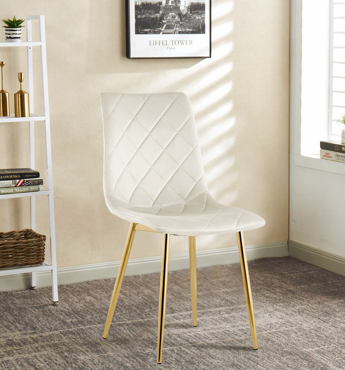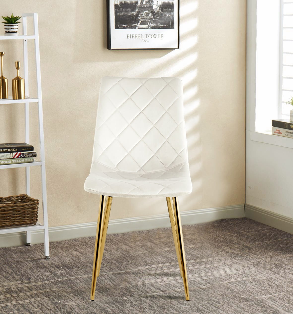 Krzesło tapicerowane Adel kremowe, nogi złote welur