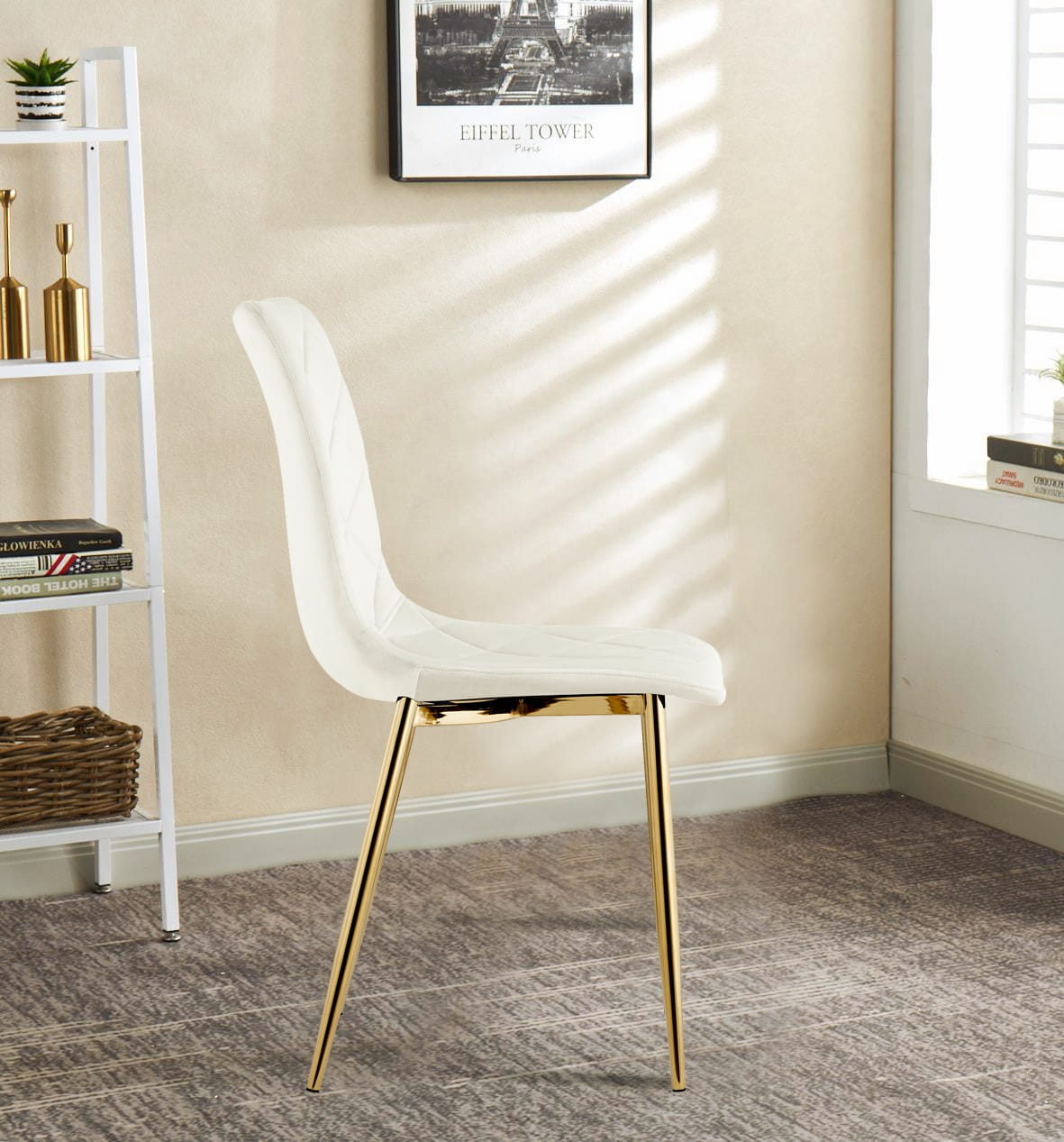 Nowoczesny Design: Krzesło Adel wyróżnia się nowoczesnym i stylowym designem, który doskonale komponuje się z różnymi aranżacjami wnętrz. Jego minimalistyczna forma i złote metalowe nogi sprawiają, że stanowi efektowny element każdego pomieszczenia.