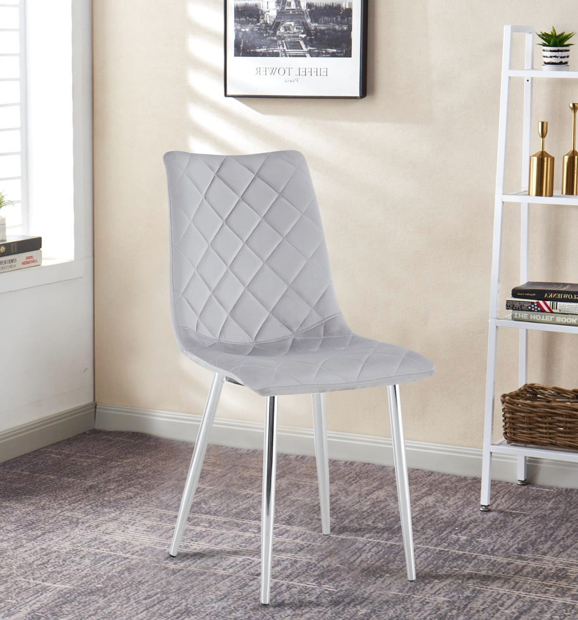 Design: Krzesło Adel wyróżnia się minimalistycznym, a jednocześnie efektownym designem. Jego tapicerowane siedzisko z weluru wzbudza zachwyt swoją miękkością i przyjemnością użytkowania, podczas gdy chromowane metalowe nogi dodają mu nowoczesnego blasku i wyjątkowej elegancji. To krzesło, które zarówno wizualnie, jak i praktycznie, stanie się nieodłącznym elementem Twojego wnętrza.