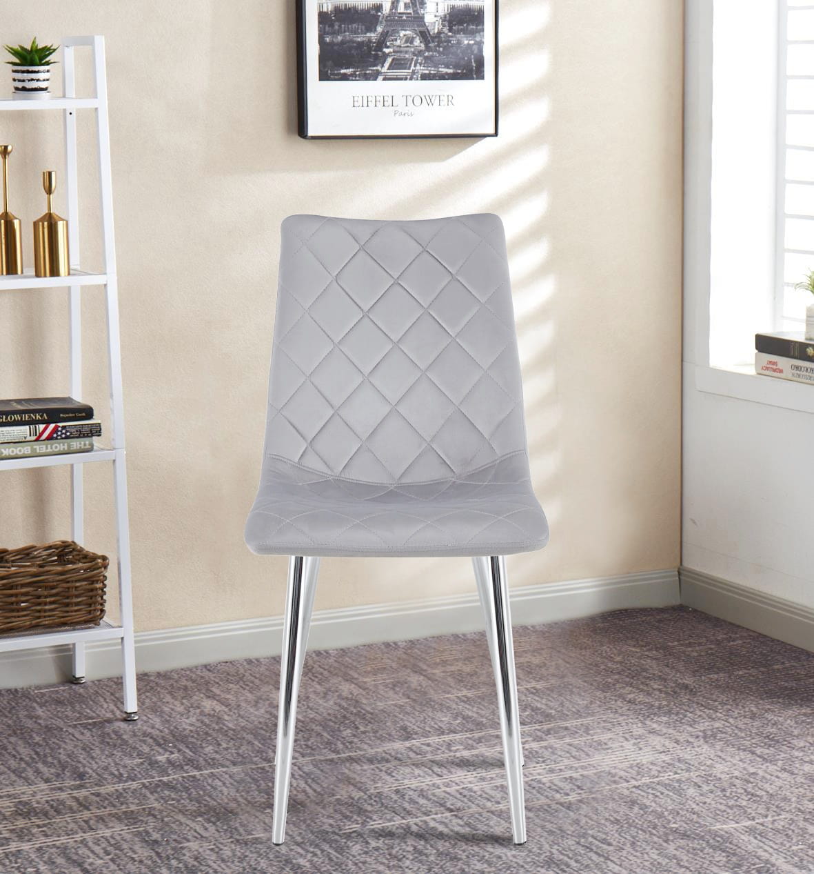 Krzesło tapicerowane Adel szare, nogi chrom welur