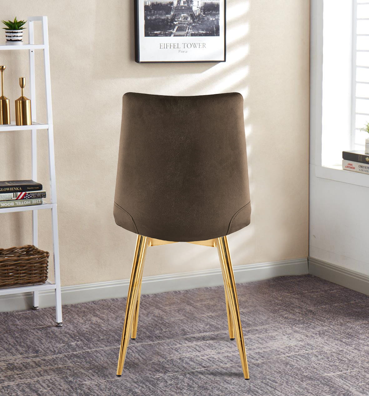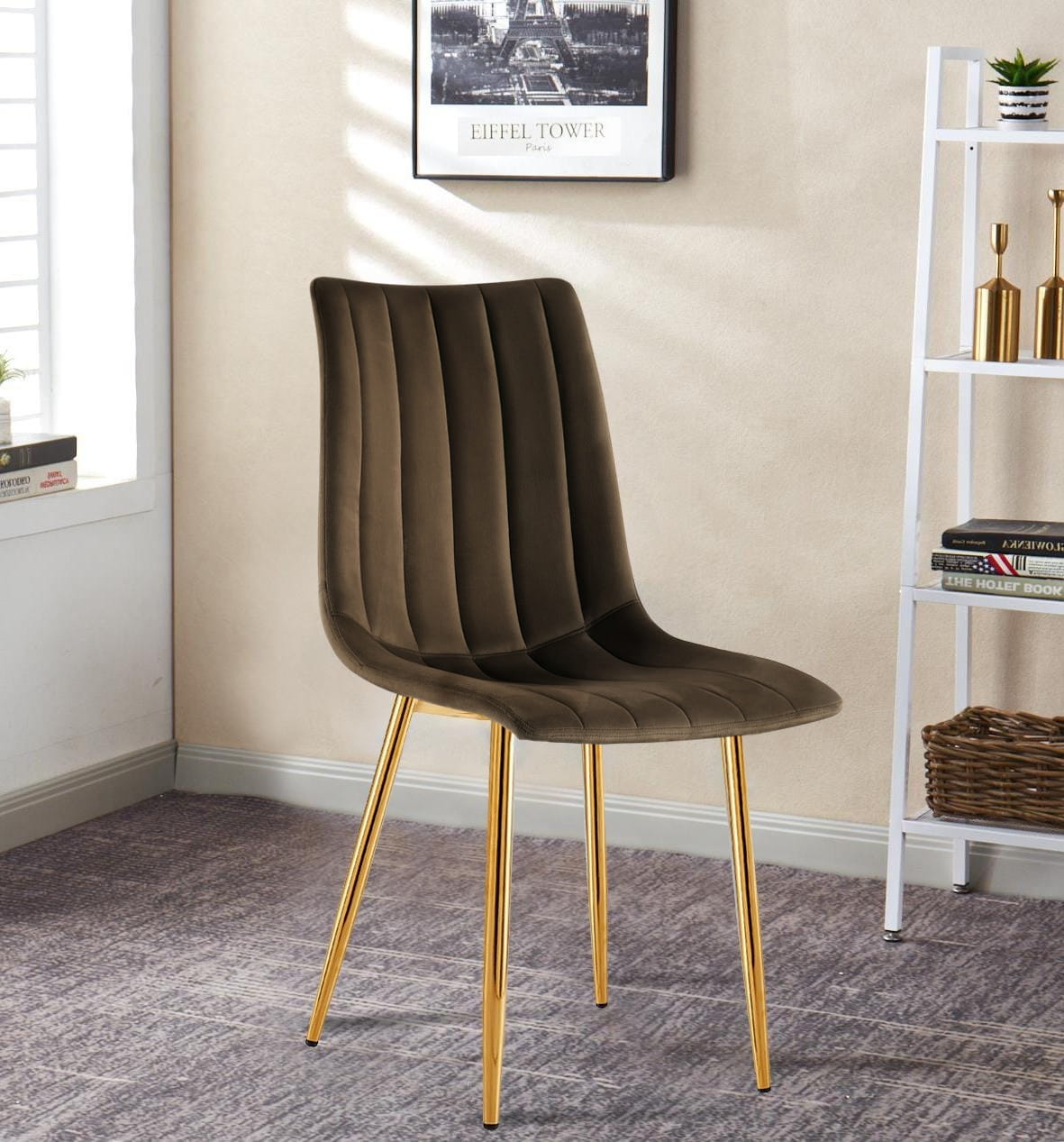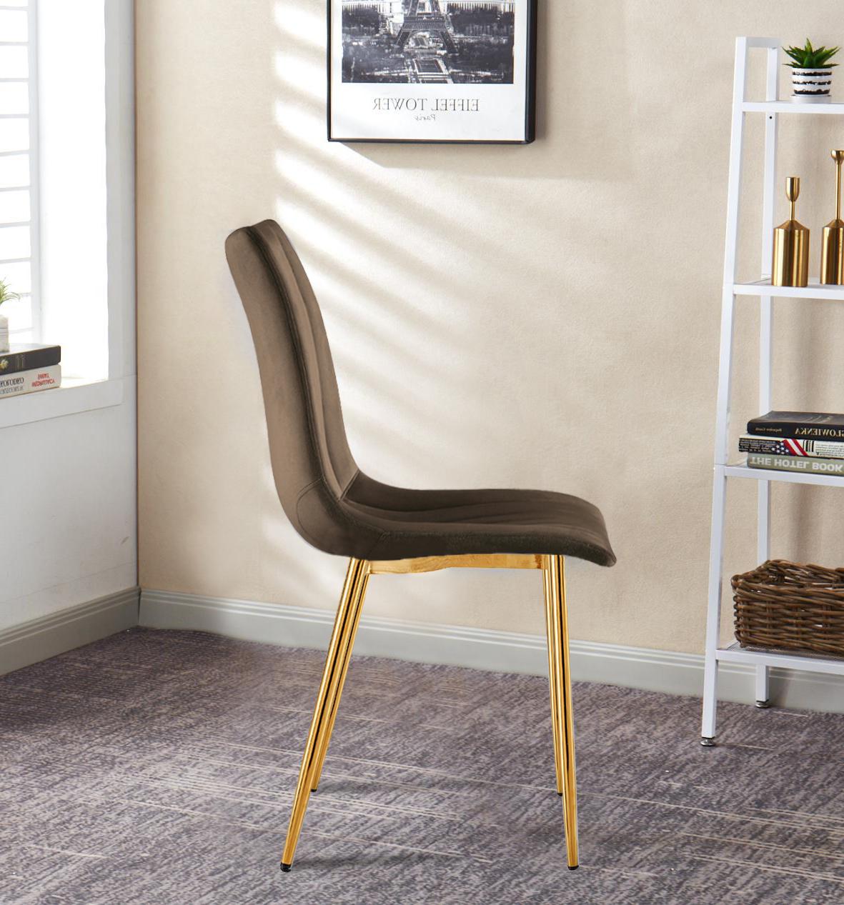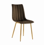 Krzesło tapicerowane Alan brązowe, nogi złote welur