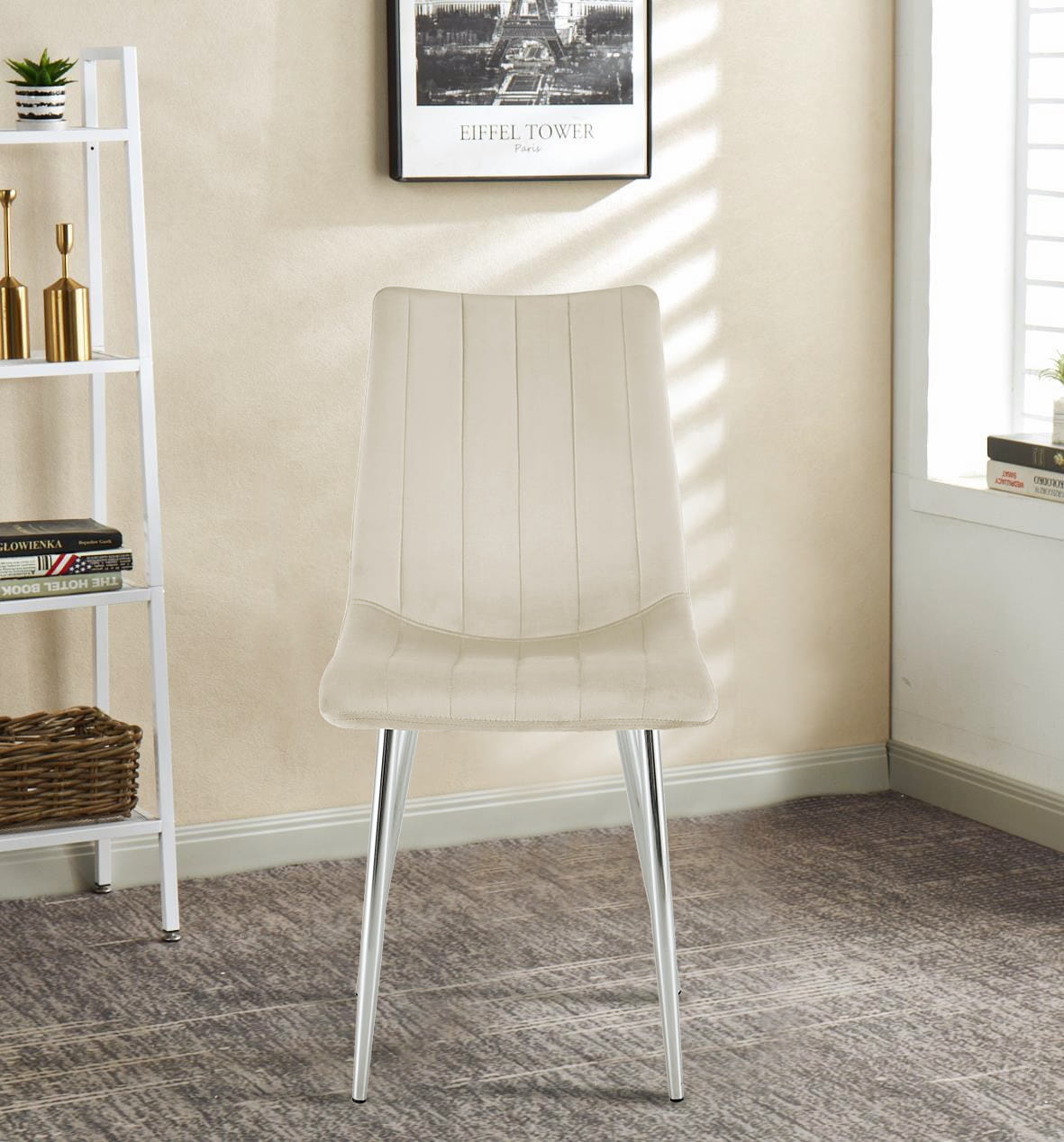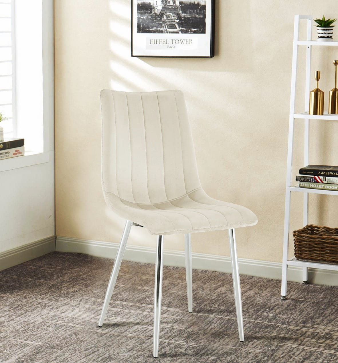 Krzesło tapicerowane Alan kremowe, nogi chrom welur