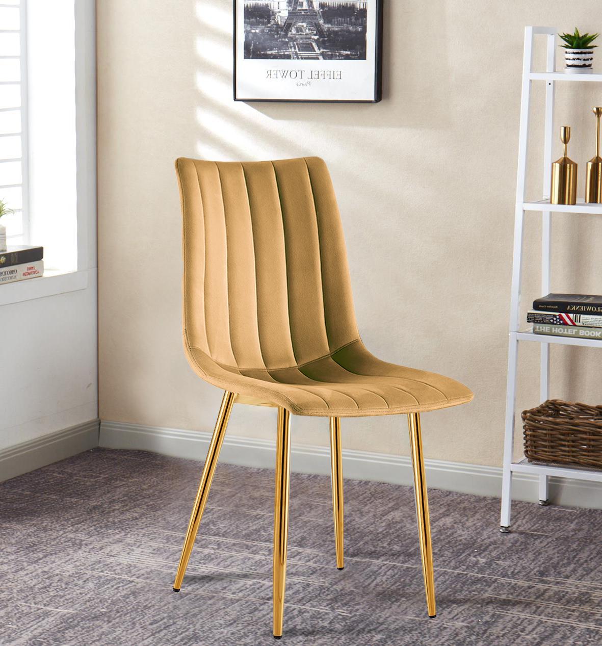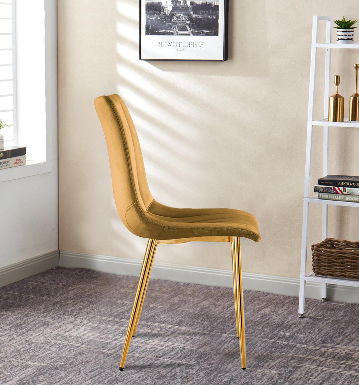 Krzesło tapicerowane Tom musztardowe, nogi złote welur