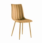 Krzesło tapicerowane Tom jasno brązowe welur, nogi złote
