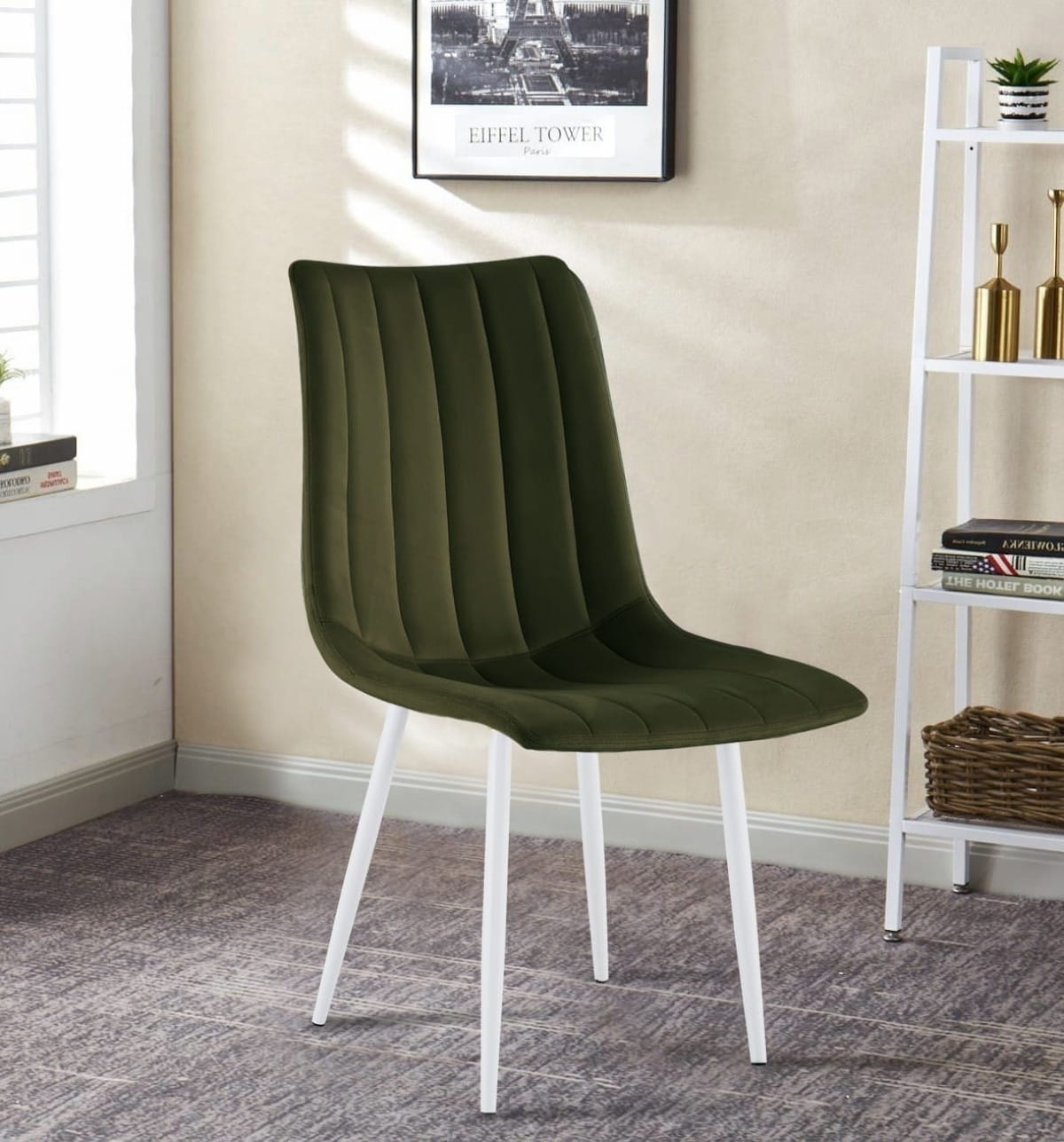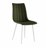Krzesło tapicerowane Alan zielone, nogi białe welur