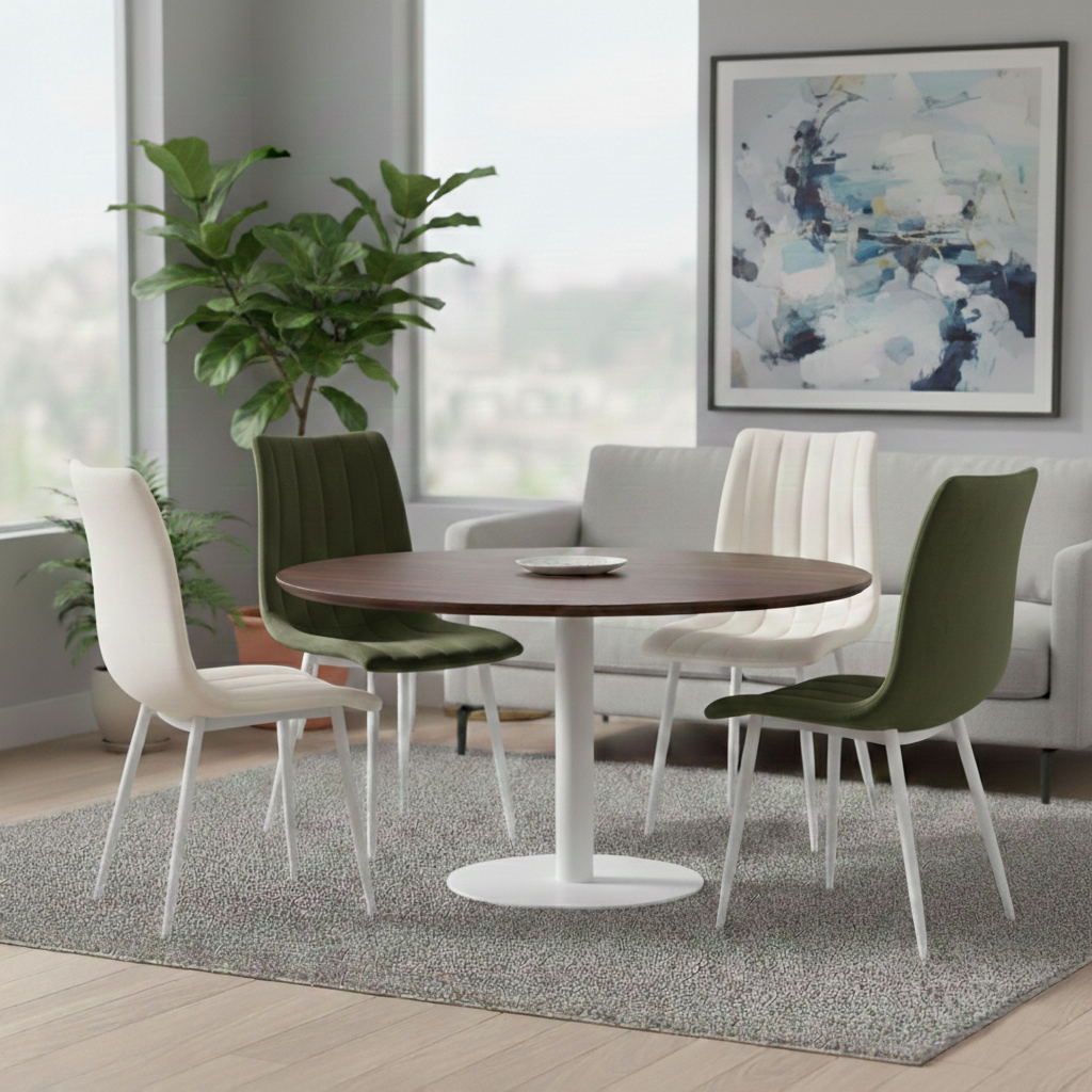 Design: Krzesło Alan to połączenie nowoczesnej elegancji z subtelnym luksusem. Jego tapicerowane siedzisko z miękkiego weluru zachwyca zarówno dotykiem, jak i wyglądem, dodając wnętrzu wyjątkowej atmosfery. Białe metalowe nogi tworzą harmonijny kontrast, nadając krzesłu lekkości i elegancji.