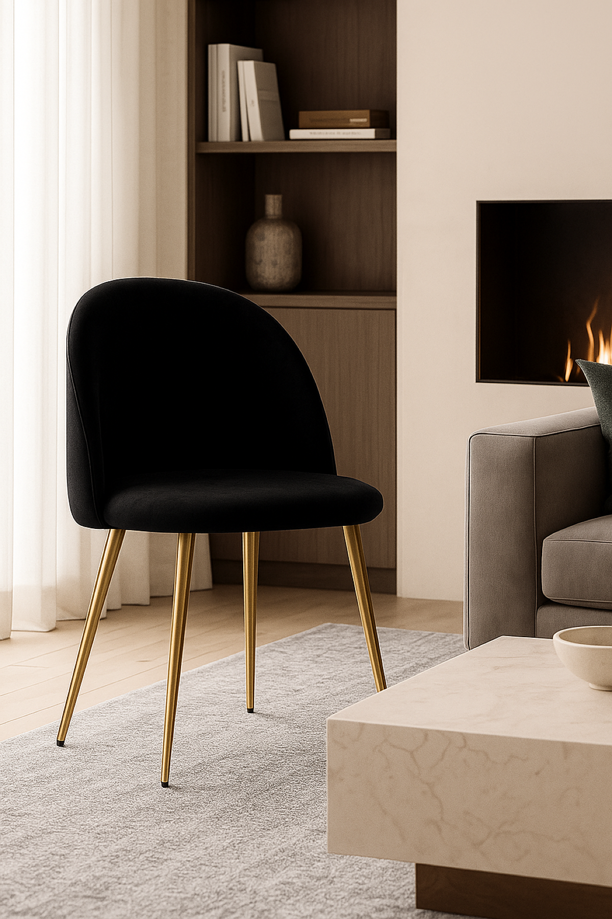 Krzesło tapicerowane do salonu FOX czarne, nogi czarne/złote welur