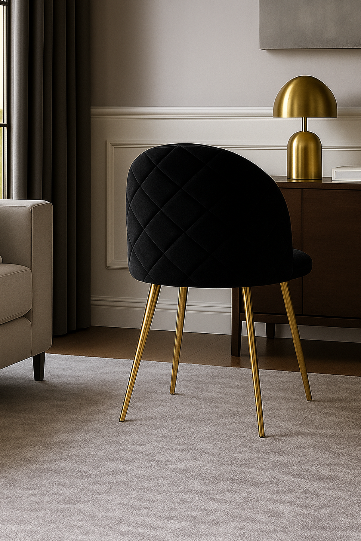 Krzesło tapicerowane Odessa czarne nogi złote przeszycia welur