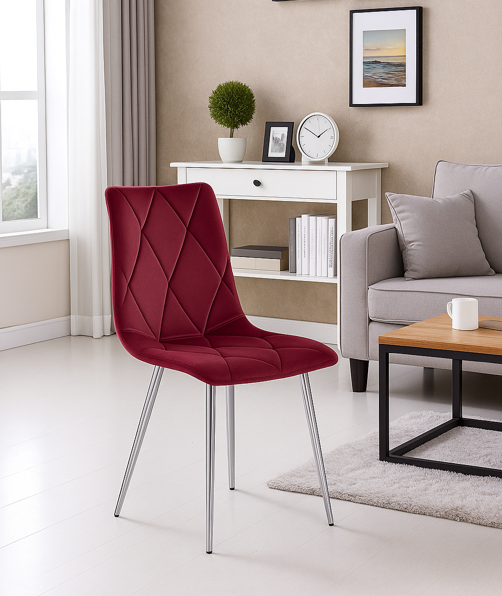 Krzesło tapicerowane Tom bordowe, nogi chrom welur