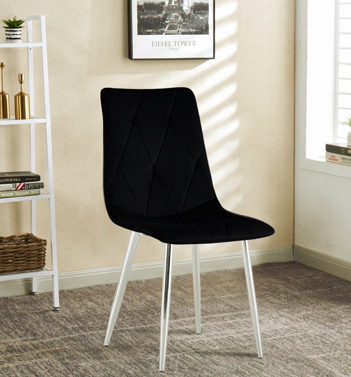 Krzesło tapicerowane Tom czarne, nogi chrom welur