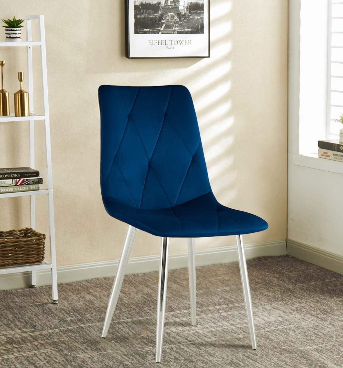 Krzesło tapicerowane Tom granatowe, nogi chrom welur